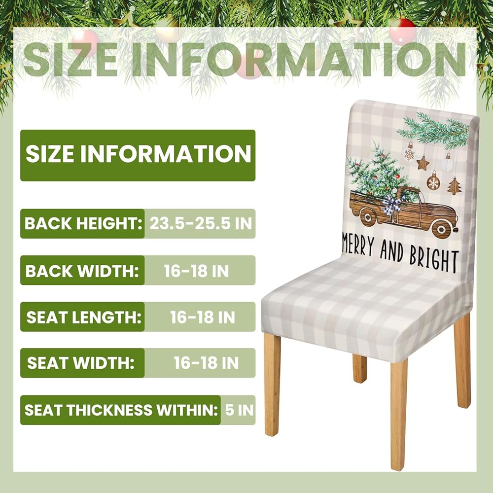 Suitable Size: these Christmas chair protectors are designed with a stretchable fabric making them easy to fit on most chairs as well as remove for cleaning purposes; Leaving a deep impression on your guests