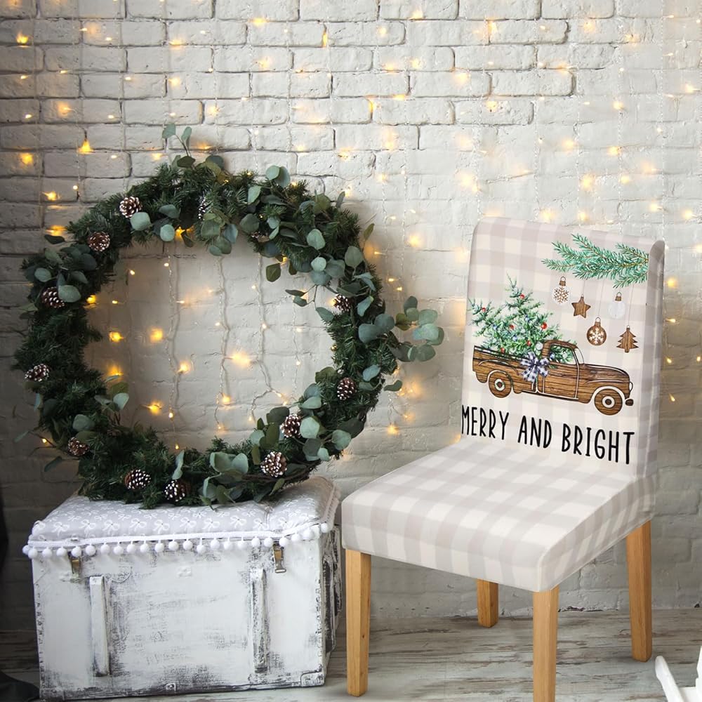 Rustic Themed Design: designed with natural rustic country style in mind, these Christmas chair covers introduces an abundance of Christmas elements; Whether decorated in a farmhouse or a home with rustic Christmas themes, these covers fit the bill aptly, adding a unique touch to your decor