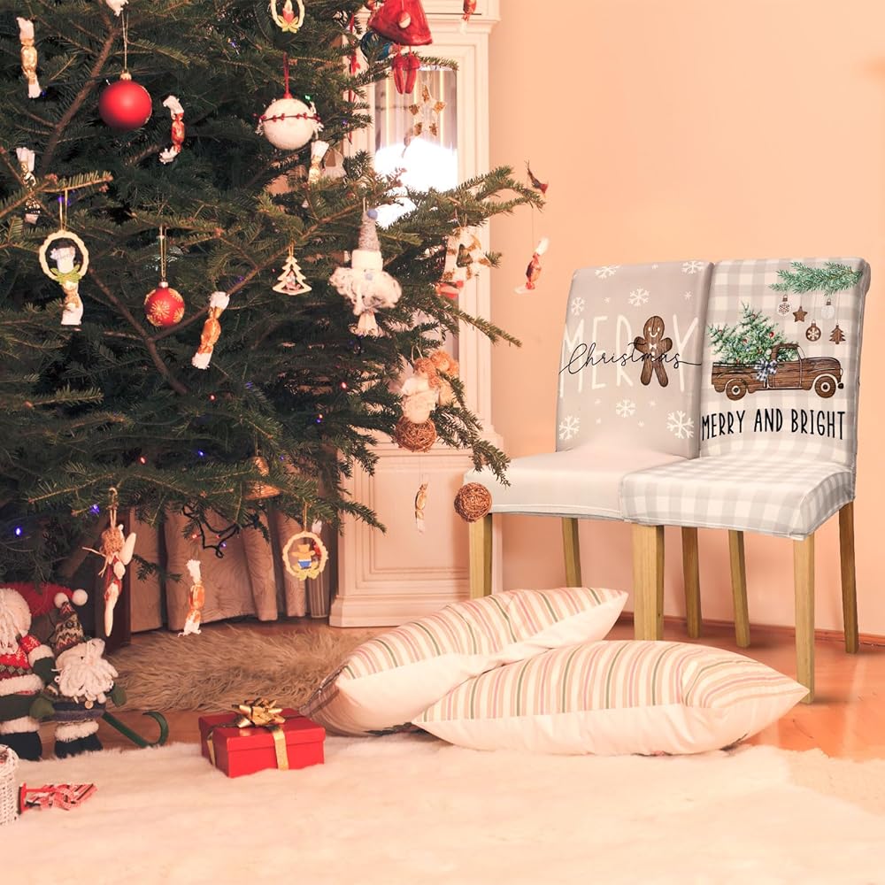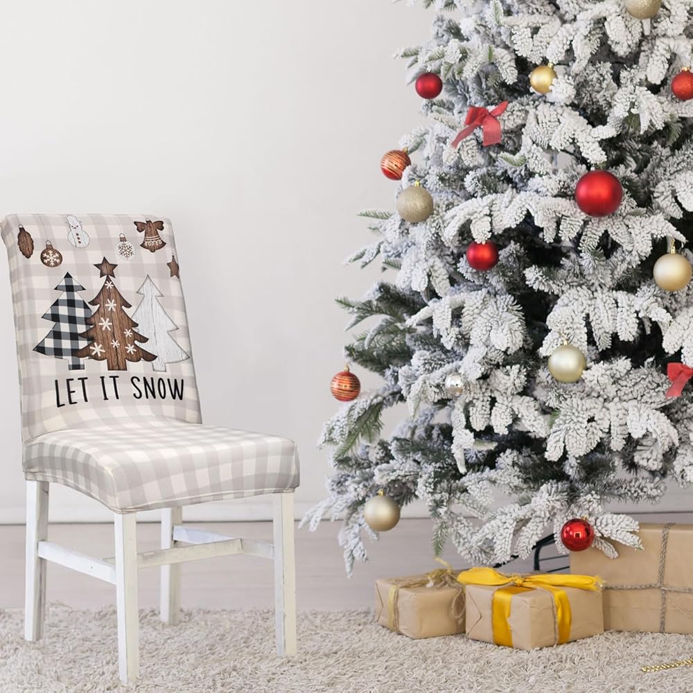 4 قطع من أغطية كراسي تناول الطعام في عيد الميلاد من موكيرين، أغطية كراسي قابلة للغسل وقابلة للإزالة وقابلة للغسل في المزرعة وأغطية كراسي عيد الميلاد الريفية وواقي كرسي عيد الميلاد لغرفة الطعام في عيد الميلاد وديكور حفلات العطلات