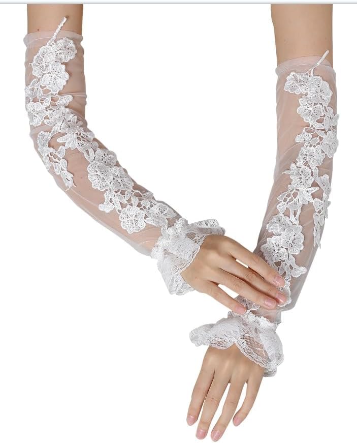 【قفازات من الدانتيل الأبيض بدون أصابع】تصميم الدانتيل الكلاسيكي بنمط الزهور يجعل قفازات الزفاف رقيقة وأنيقة للغاية، مما يضيف المزيد من الأناقة للنساء والفتيات، خاصة عندما ترغب في حضور مثل هذه المناسبات الرسمية، يمكن مطابقتها مع فستانك الرائع. مناسبة جدًا كهدية للنساء.