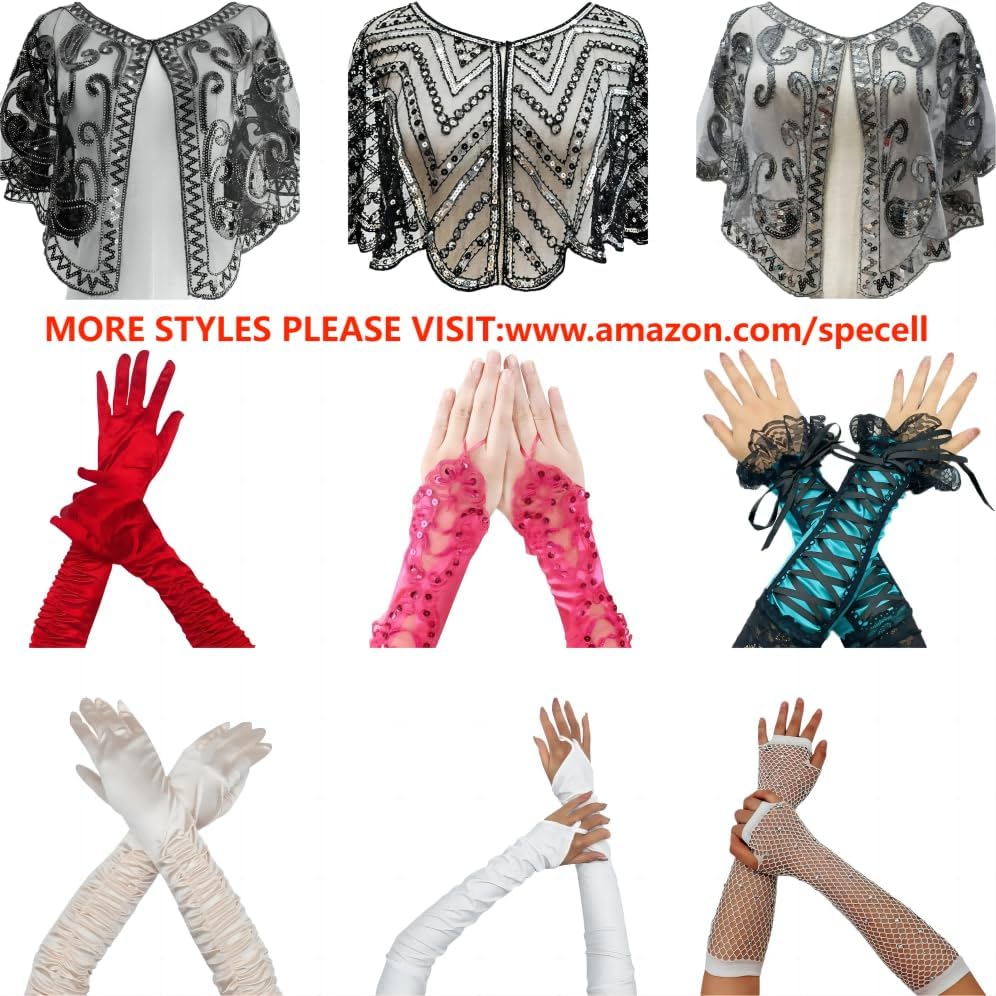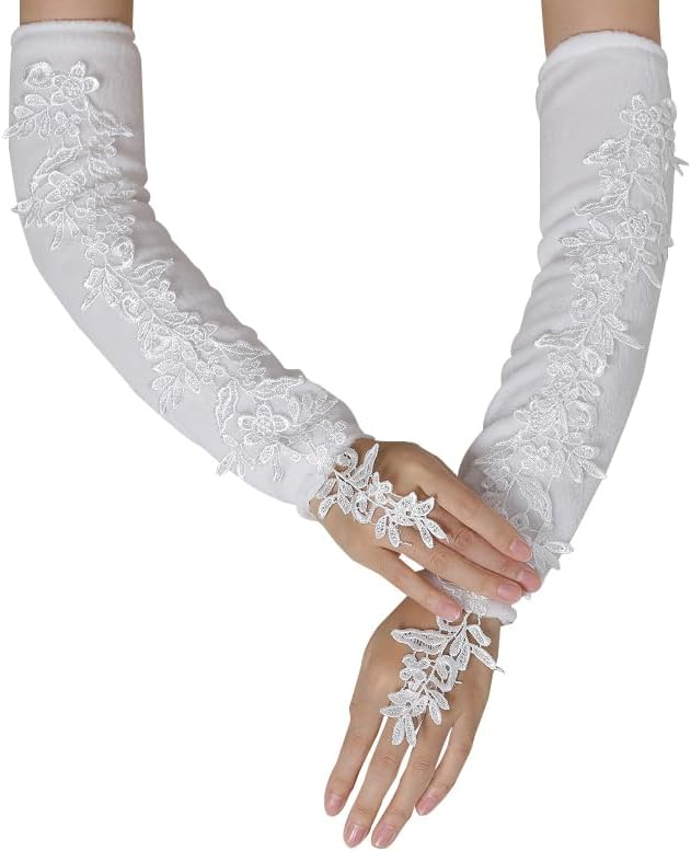 【قفازات من الدانتيل الأبيض للنساء للمناسبات】 هذه القفازات الطويلة من الدانتيل بدون أصابع للنساء يمكن أن تتطابق بسهولة مع مجموعة متنوعة من إكسسوارات أزياء فلابر، وغطاء الرأس/عصابة الرأس، والقلادة، والفستان، وإكسسوارات غاتسبي العظيم، وإكسسوارات العشرينات من القرن العشرين، والهالوين، يمكن ارتداؤها مع أي أزياء ذات طابع خاص. .