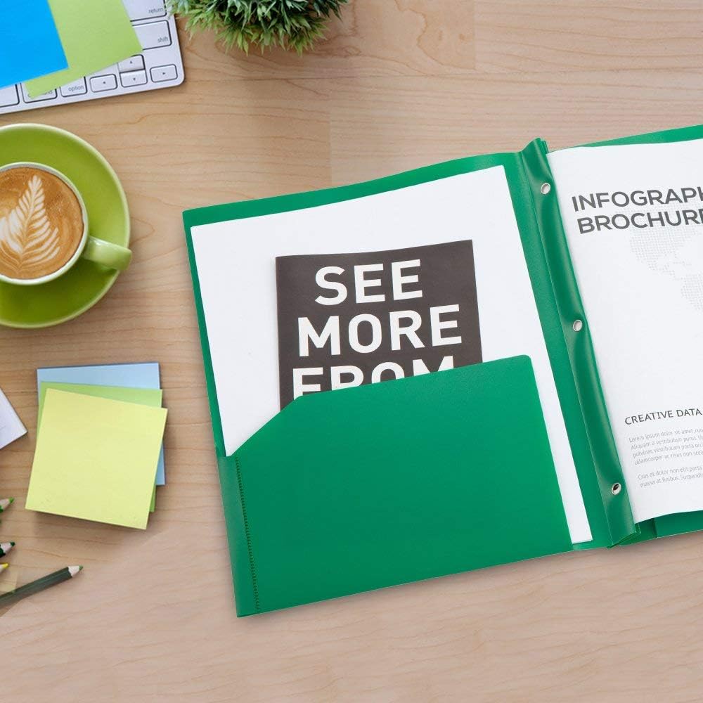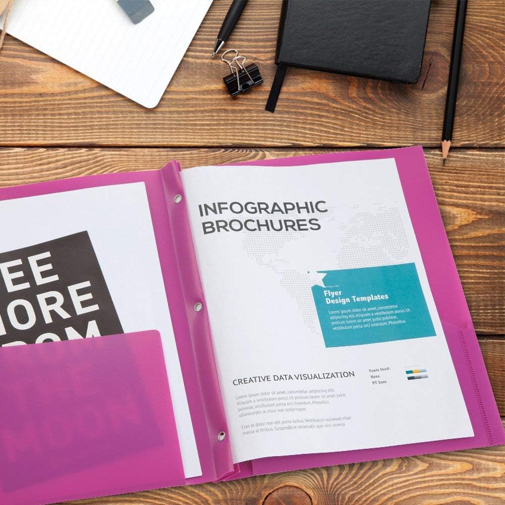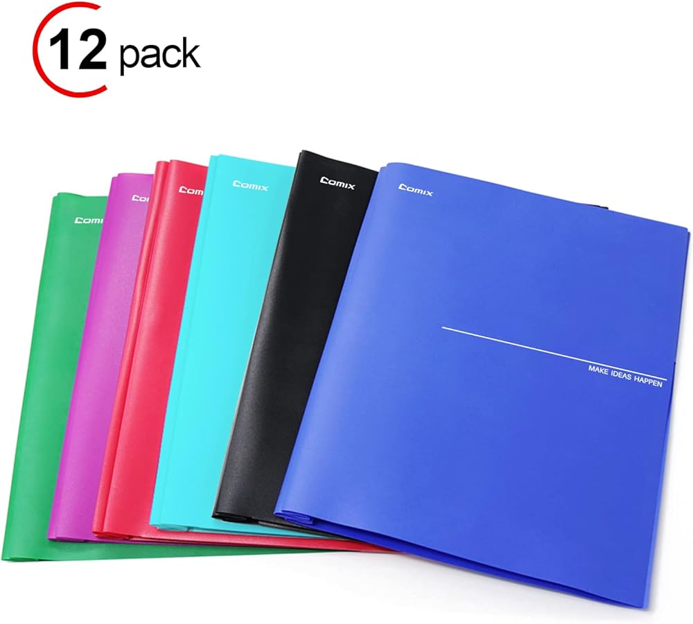 مجلدات جيب بلاستيكية من كوميكس مع 3 فتحات مثقوبة، 12 حزمة، مجلدات مجلدة مع جيبين، تحمل ورق بحجم الحروف للمدرسة والمكتب (6 ألوان متنوعة)