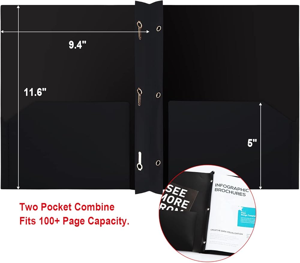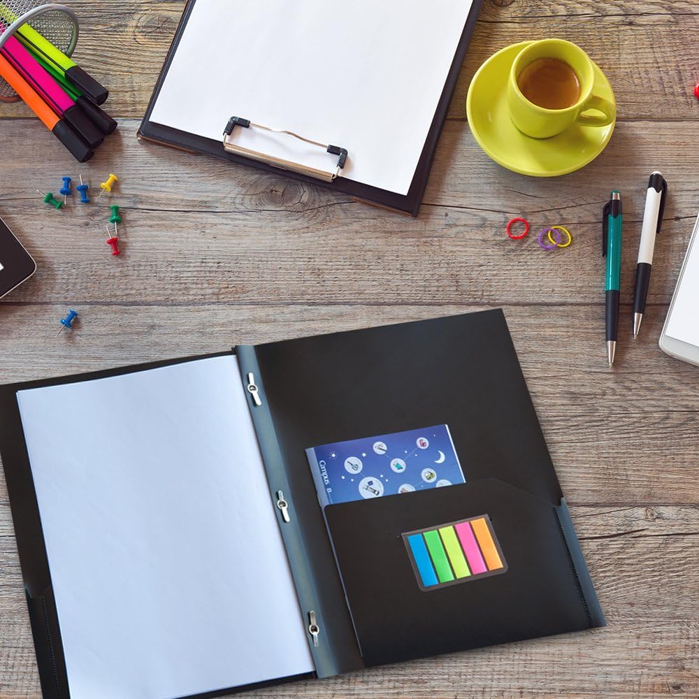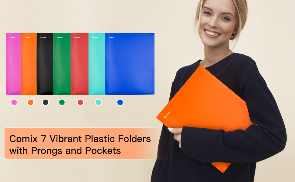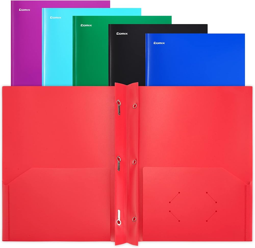 مجلدات جيب بلاستيكية من كوميكس مع 3 فتحات مثقوبة، 12 حزمة، مجلدات مجلدة مع جيبين، تحمل ورق بحجم الحروف للمدرسة والمكتب (6 ألوان متنوعة)