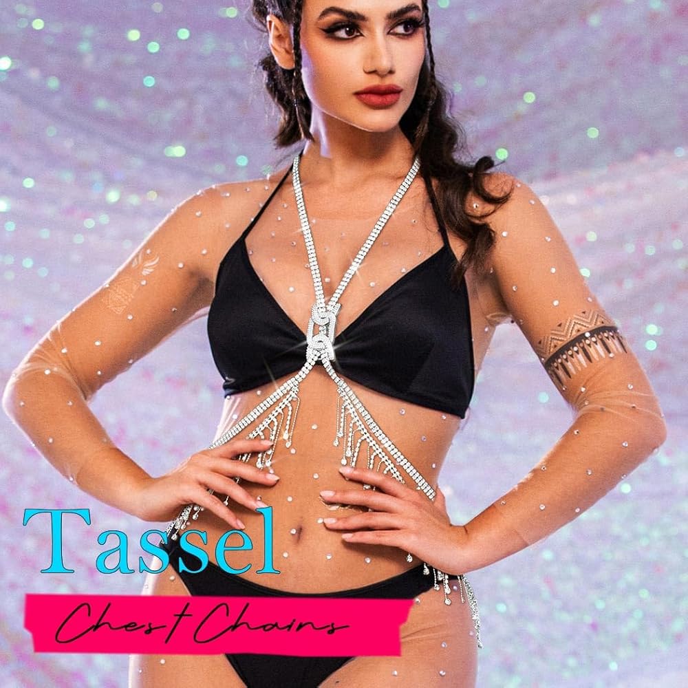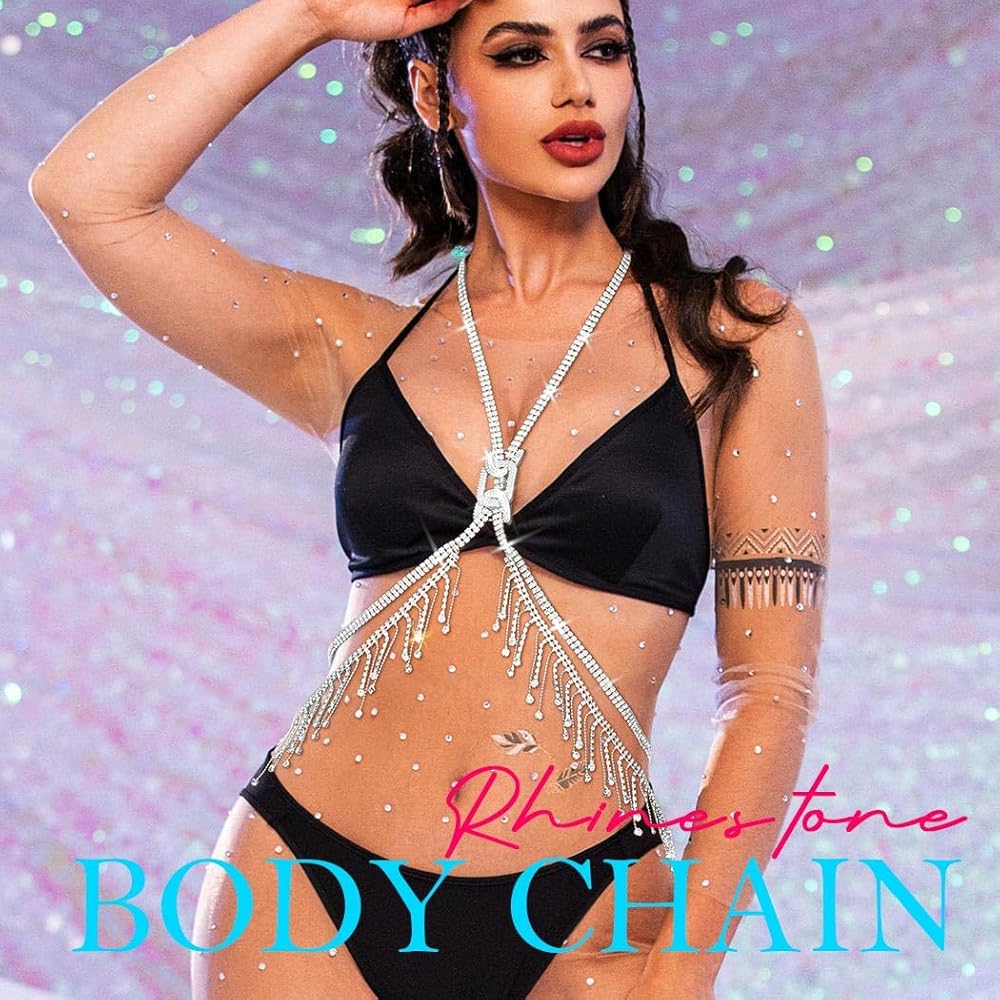 • Rhinestone body chain is made of polished chains and rhinestone, which are comfortable to wear and will not harm the skin.