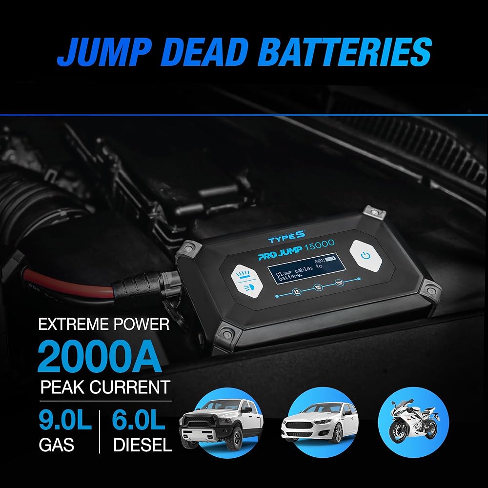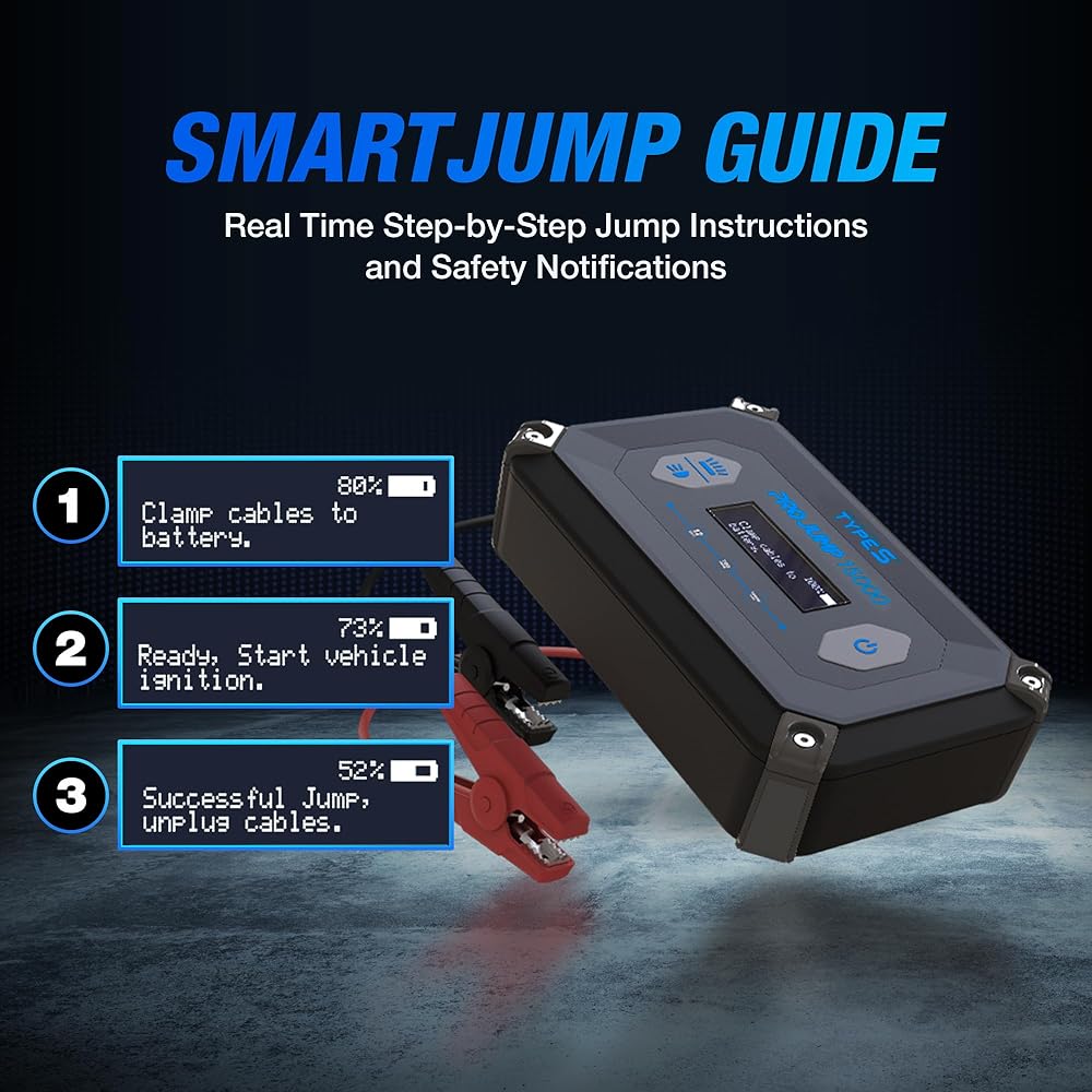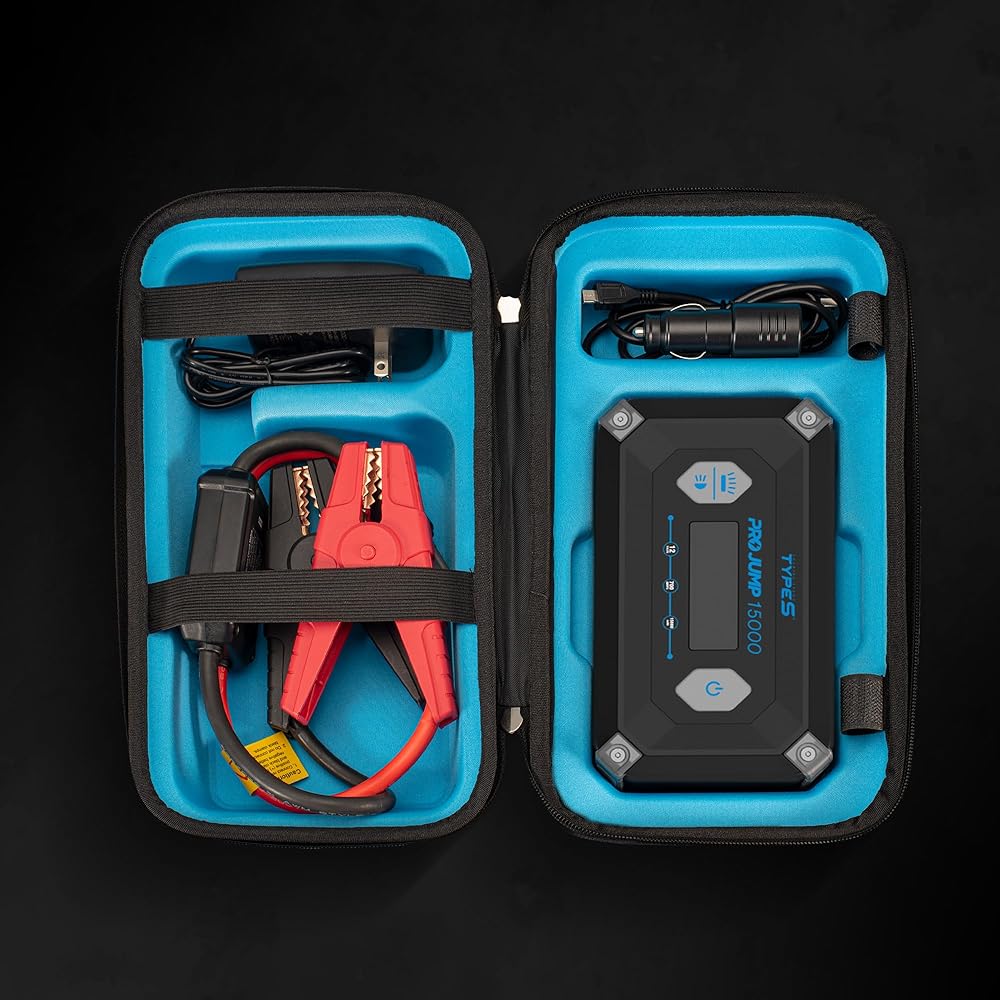 • ضروري لكل مركبة - تجنب البقاء عالقًا على الطريق مع بطارية فارغة وابدأ تشغيل سيارتك بسهولة، بدون كابلات توصيل وبدون مركبة ثانية، باستخدام TYPE S 12V 9.0L ProJump Battery Jump Starter.