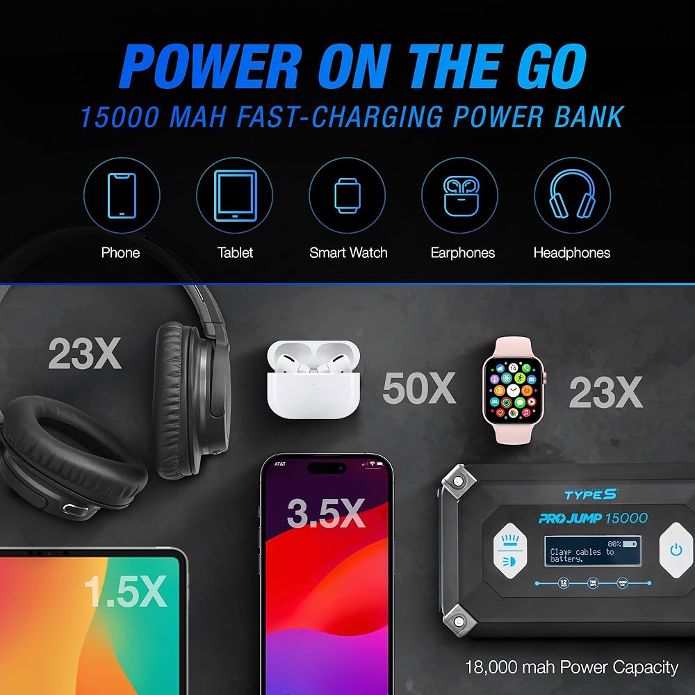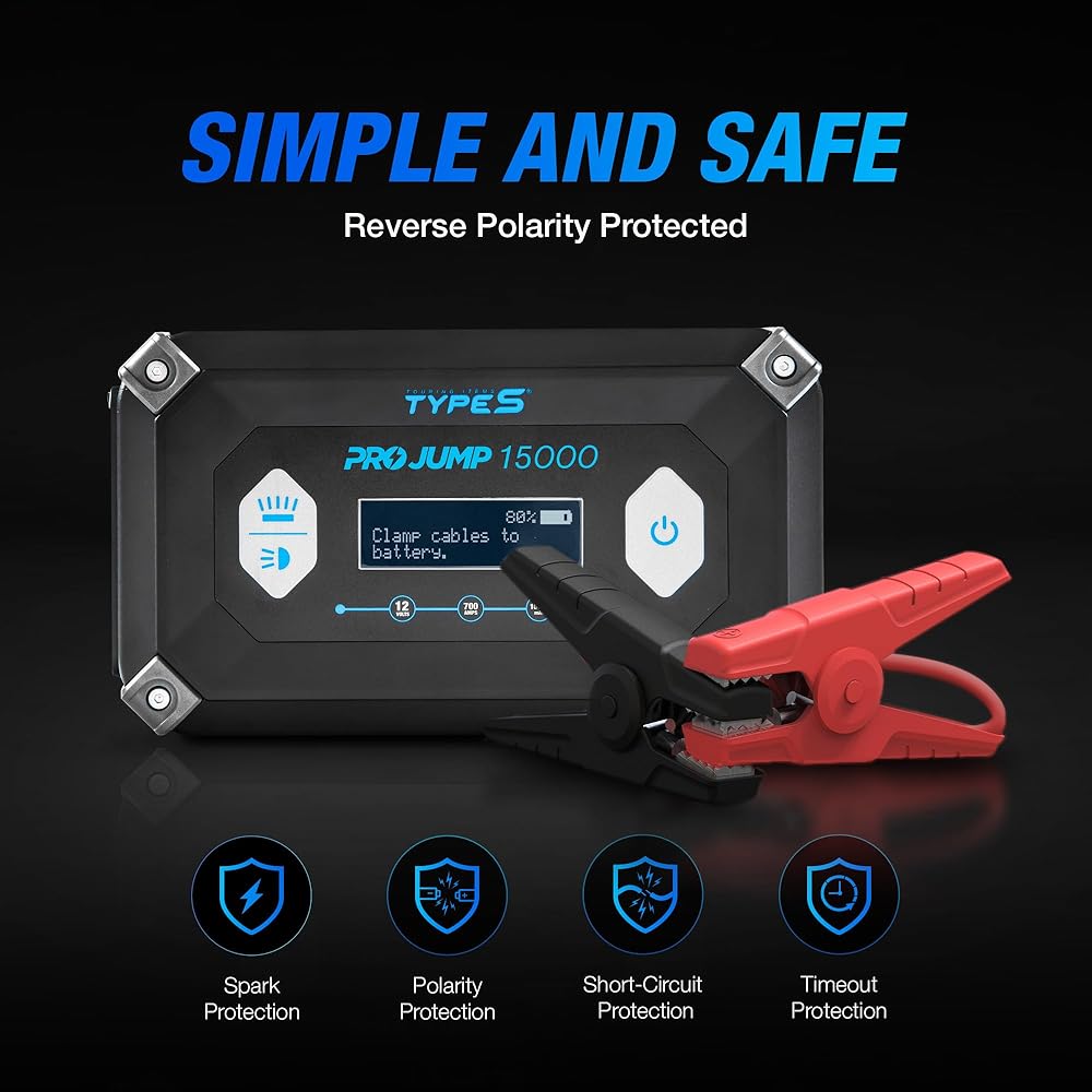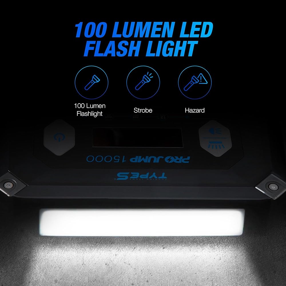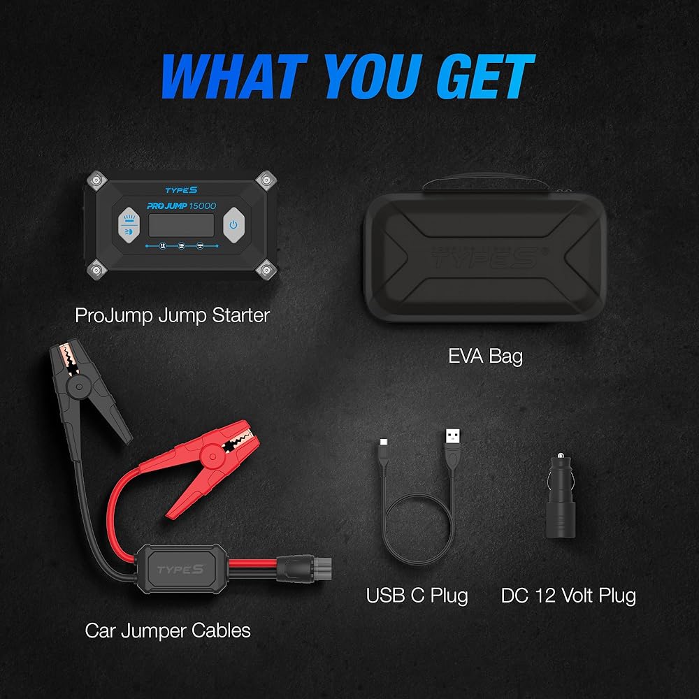 • ضروري لكل مركبة - تجنب البقاء عالقًا على الطريق مع بطارية فارغة وابدأ تشغيل سيارتك بسهولة، بدون كابلات توصيل وبدون مركبة ثانية، باستخدام TYPE S 12V 9.0L ProJump Battery Jump Starter.