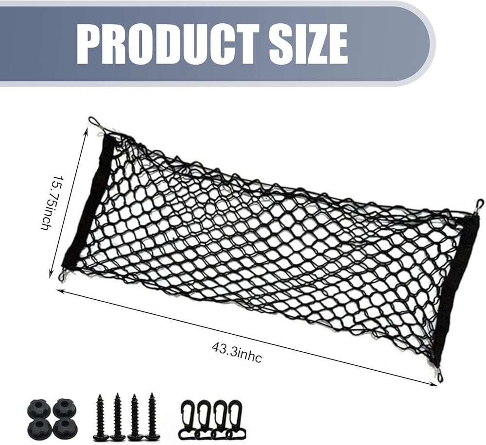 Packing Contents: You will receive a 43.3" x 15.74" car trunk luggage net bag, four hanging buckles, four screws, and four buckles. If you have any questions or concerns, please feel free to contact us and we will provide you with the best customer service.