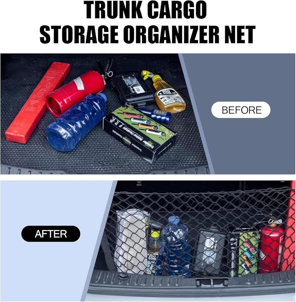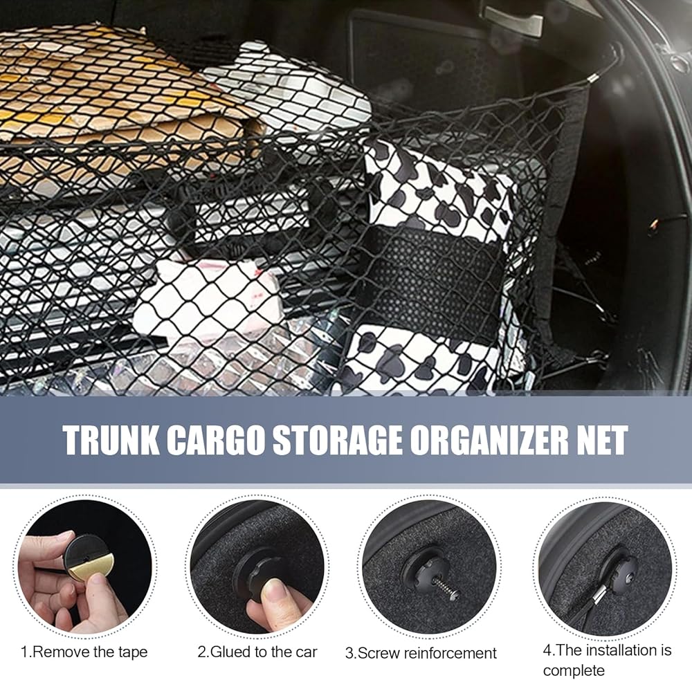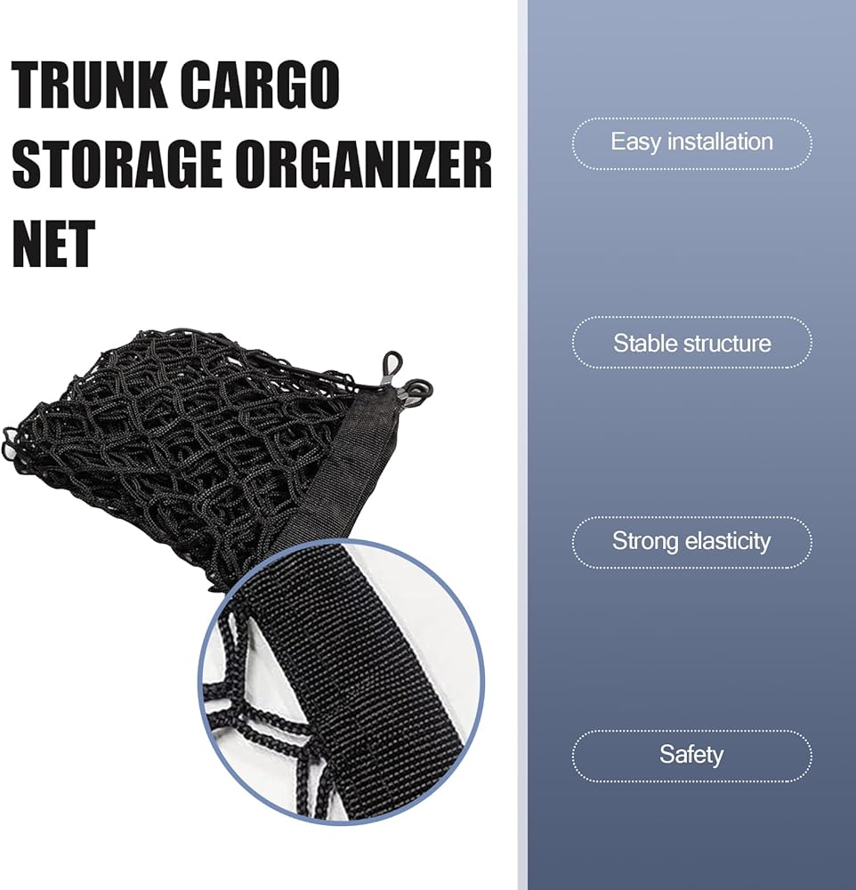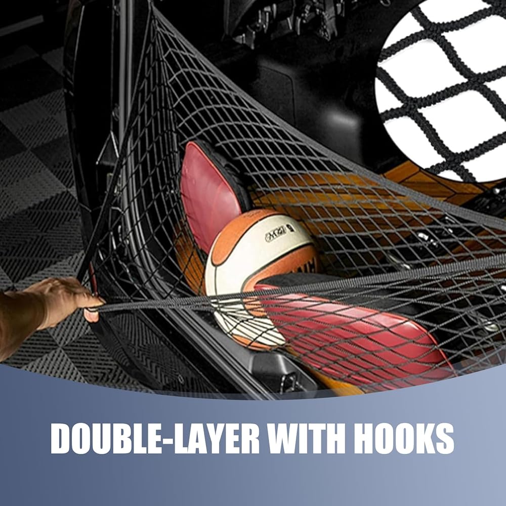Double-layer Design: The mesh bag has a double-layer grid structure, which can separate the storage space in the trunk, making it easier to store different types of items in categories and improving space utilization.