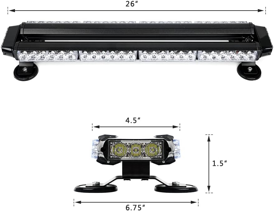 • 🚨 【رؤية فائقة】 تم تصميم ضوء الطوارئ رقم 32 مقاس 26 بوصة مع 54 مصباح LED عالي الكثافة، ساطع بما يكفي للاستخدام اليومي. يحتوي كل من الجزء الأمامي والخلفي من الضوء على 6 مجموعات من مصابيح LED، كل مجموعة بها 6 مصابيح LED عالية الطاقة. وهناك مجموعة واحدة من مصابيح LED على الجانبين الأيسر والأيمن، و3 مصابيح LED عالية الطاقة في كل مجموعة، تصميم فريد لتلبية احتياجات السطوع الأعلى، مما يوفر تغطية إضاءة 360 درجة أثناء النهار أو الليل.
