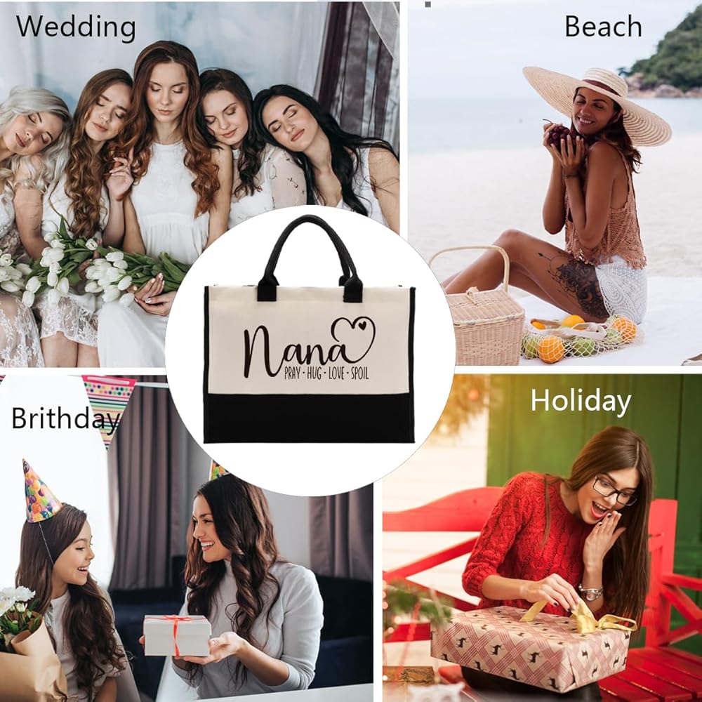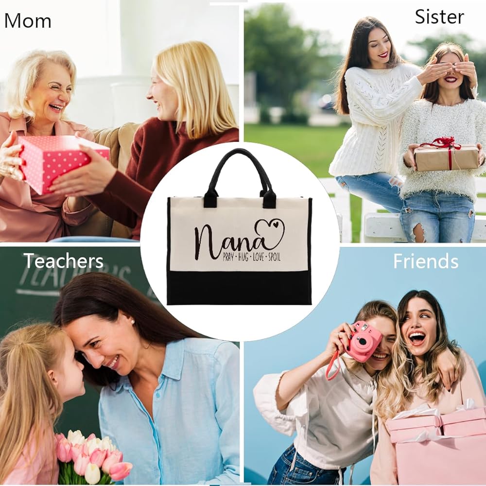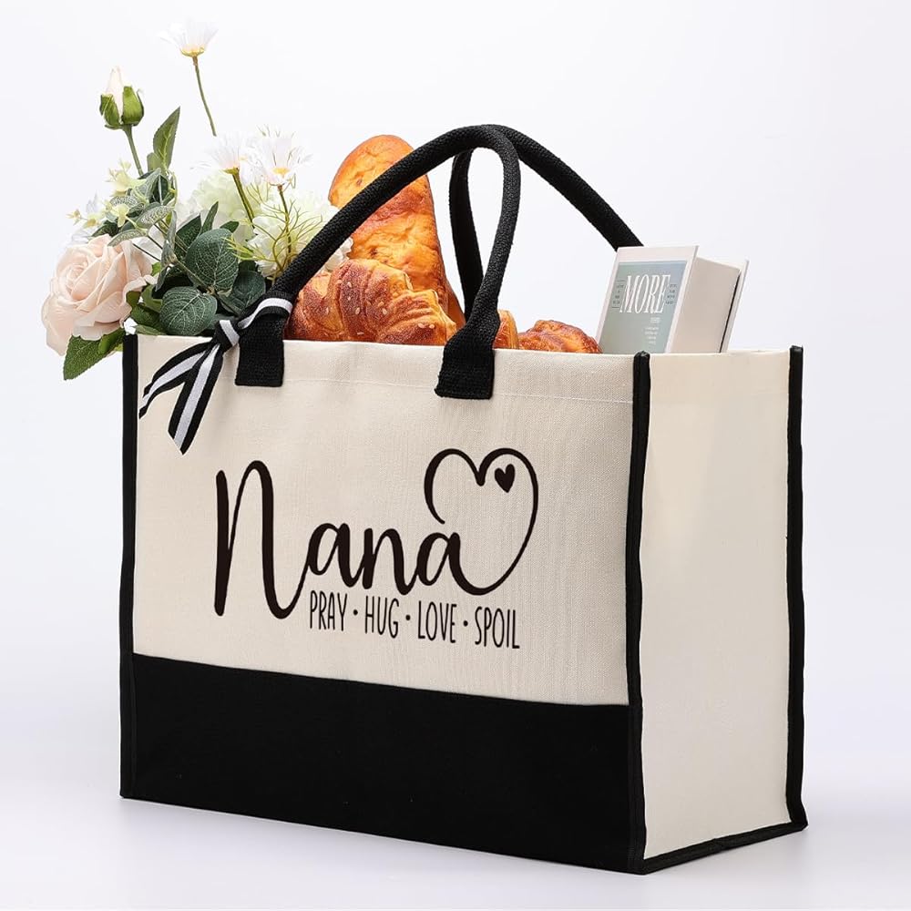 هدية حقيبة قماش نانا، هدية قلب نانا: الصلاة - العناق - الحب - الدلال، حقيبة حمل قماشية للهدايا، حقيبة حمل قماش قطنية نسائية لعيد الأم، هدية عيد ميلاد نانا، هدية مسيحية لنانا