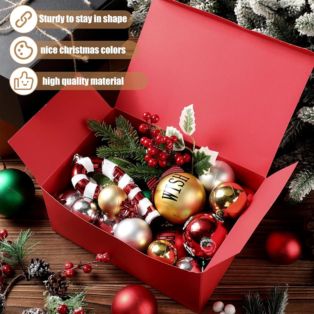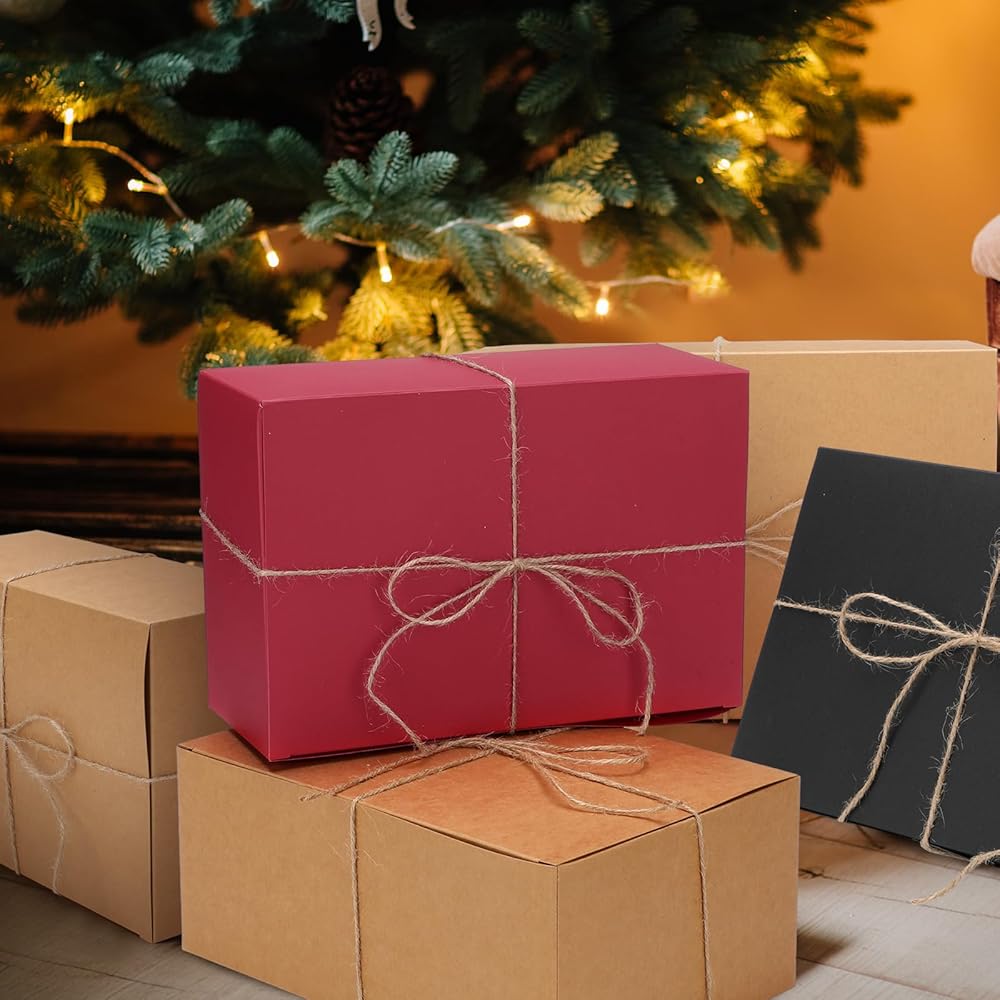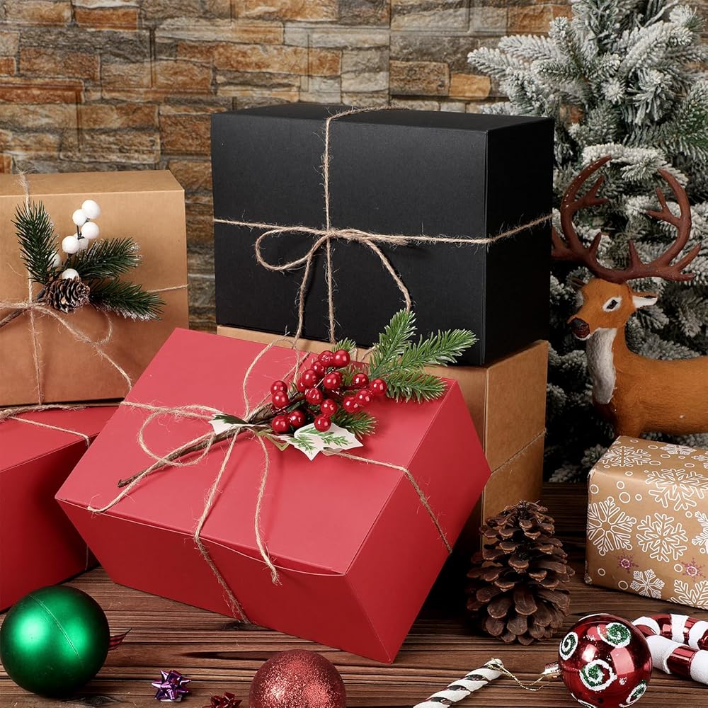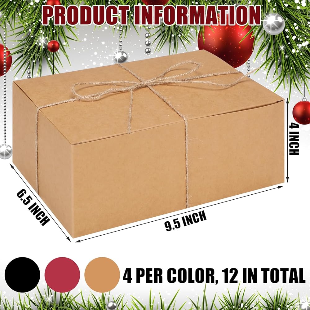 Package Contains: you will receive 12 pieces of Christmas boxes in 3 colors, namely brown, red and black, 4 pieces for each color, combined with 20 meters twine, enough quantity to meet your different use