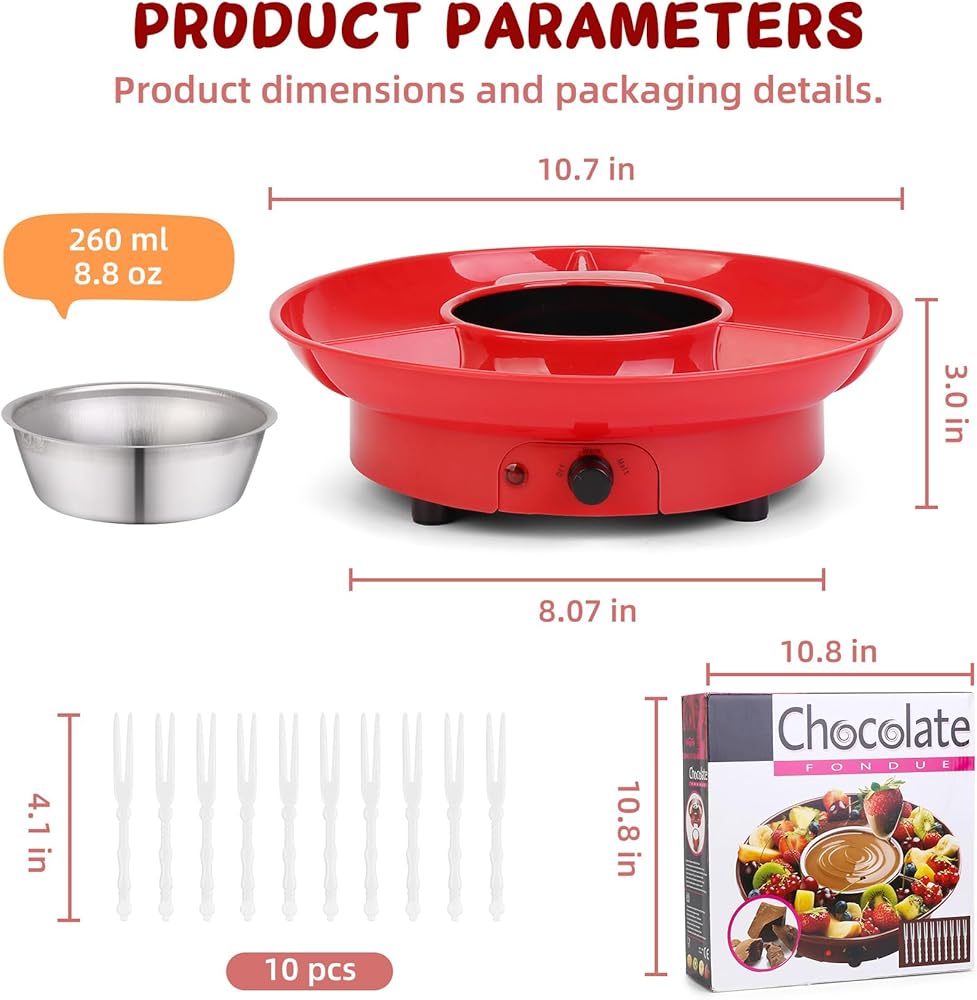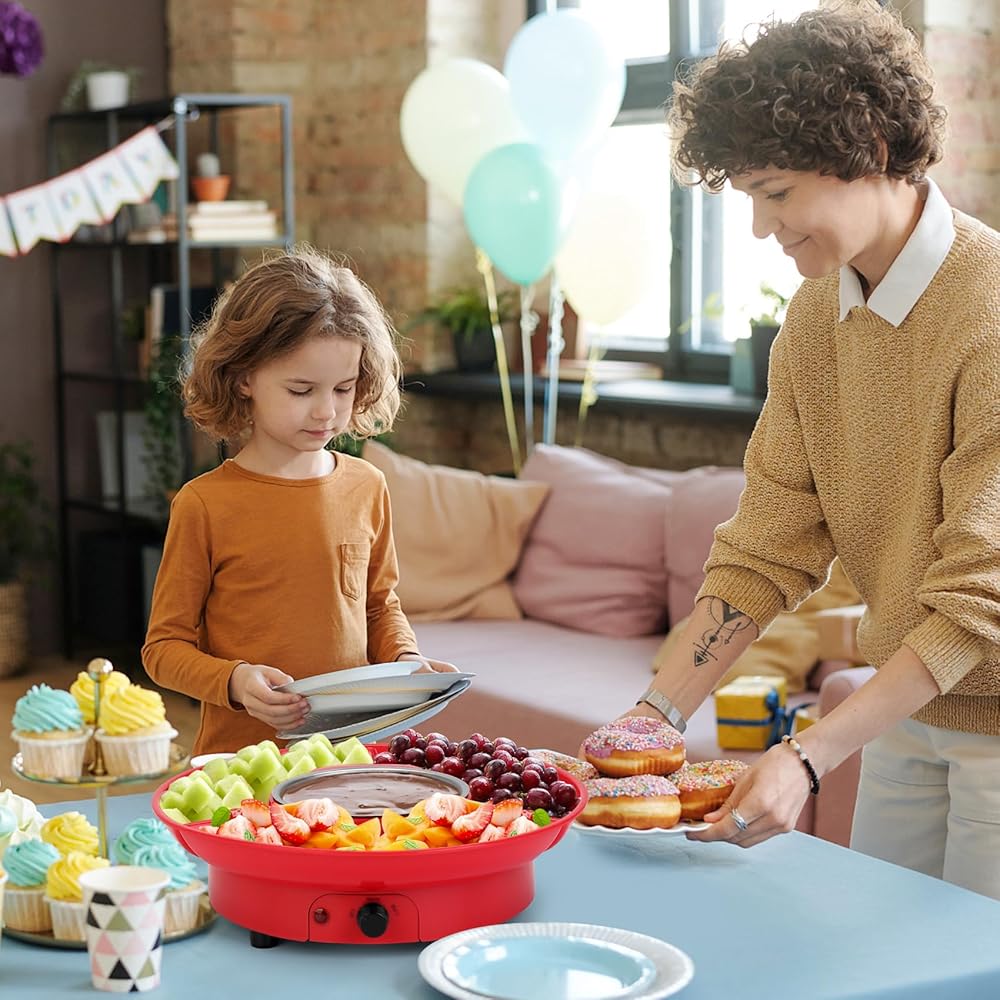 مع مجموعة الفوندو الكهربائية هذه، يمكنك ترفيه ضيوفك وأصدقائك بالشوكولاتة اللذيذة وتوفير وقت ممتع لصنع حلويات الشوكولاتة الخاصة بهم، لذلك ستحقق نجاحًا كبيرًا في الحفلات مثل التجمعات العائلية الصغيرة وحفلات أعياد ميلاد الأطفال وحفلات التخرج. كما أنه رائع لليالي مشاهدة الأفلام وليالي المواعدة ومشاهدة كرة القدم والنزهات في المنزل.