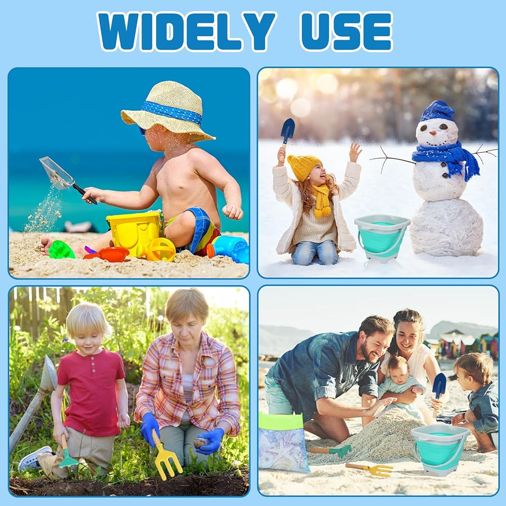 Our beach toys can be used in the garden as well as on the beach, you can use our strong shovels, forks and rakes to soil the flowers, and water the flowers with a folding bucket, in addition to camping trips or snow use, perfect for children, adults, exploration enthusiasts, shell collectors, etc.,