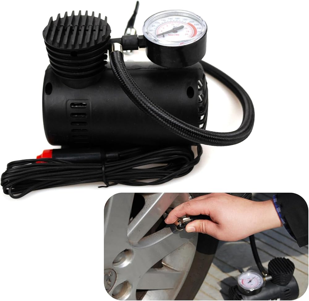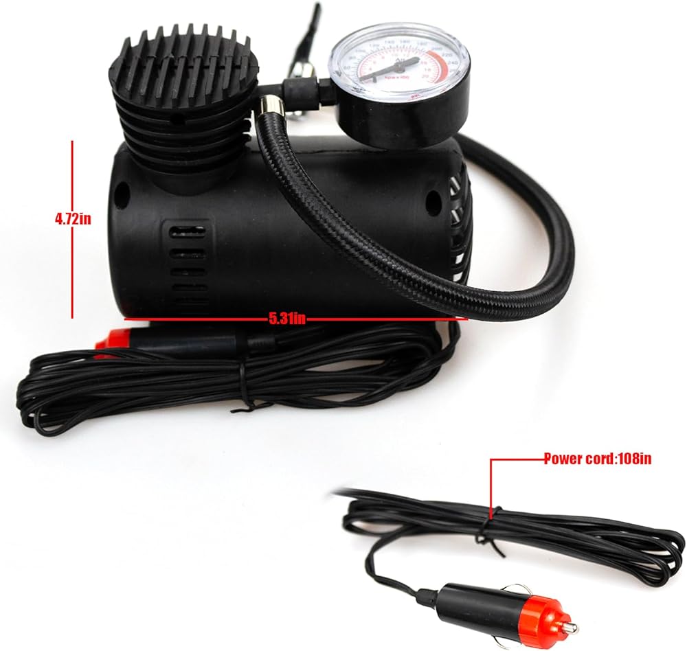 【PERFECT DESIGN】: This tire inflator is made of high quality material, beautiful appearance, durable, powered by 12V DC lighter socket, light weight and small size, can inflate standard car tires in 8-10 minutes.