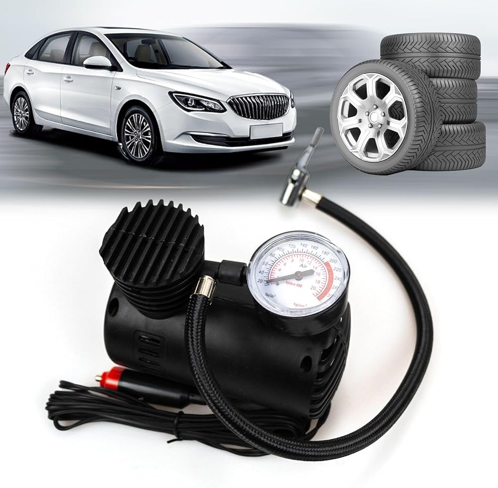 مضخة نفخ السيارة المحمولة، منفاخ إطارات ضاغط 12 فولت مع مقياس ضغط ميكانيكي، منفاخ سيارة من نوع المؤشر للسيارات والدراجات النارية والدراجات الهوائية وكرات السلة وإكسسوارات السيارات العامة