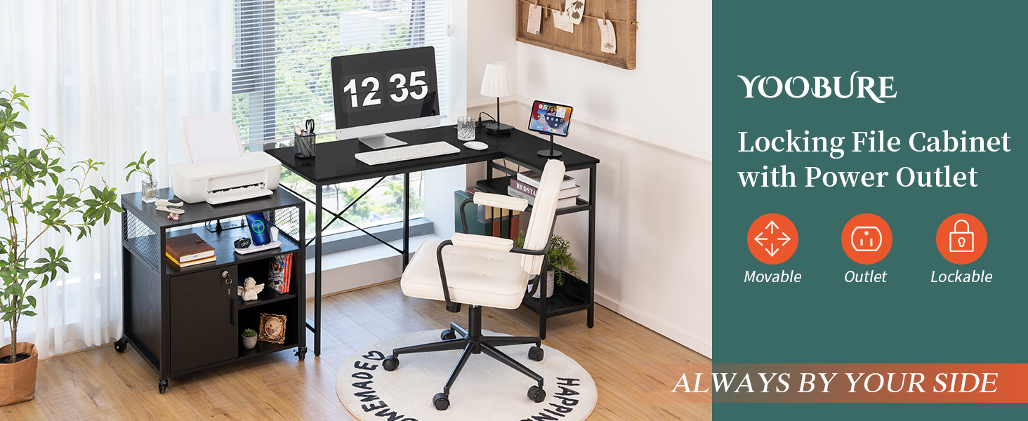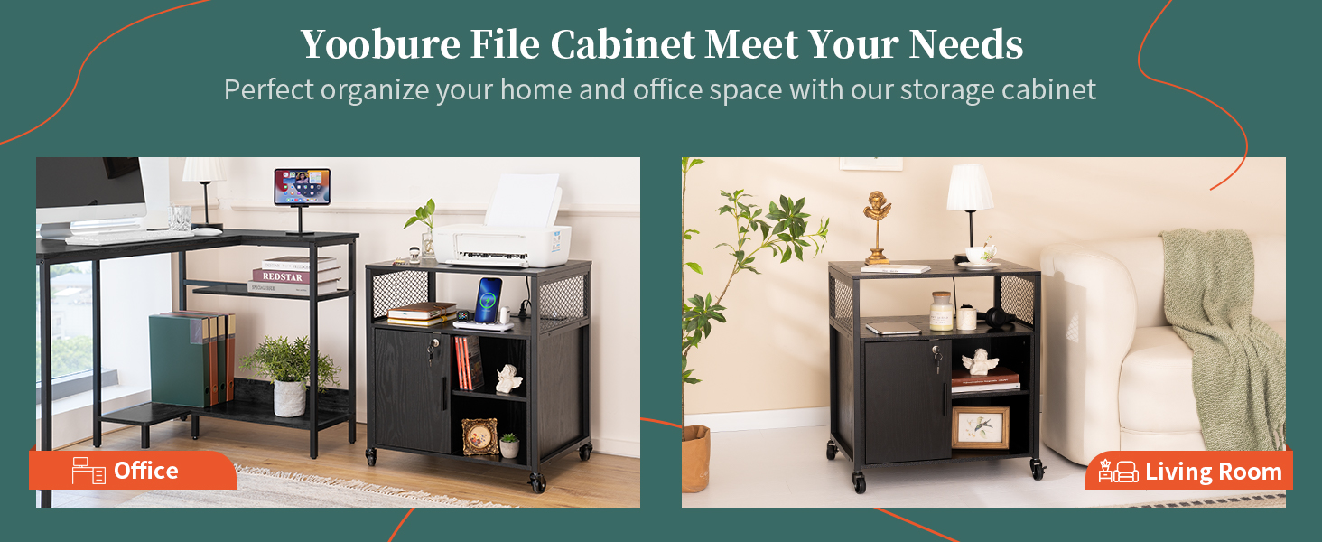 🔋【خزانة ملفات مع محطة شحن】تم تصميم حامل الطابعة لخزائن الملفات المكتبية من Yoobure ليكون الداعم المخلص لك في عملك. مع 3 مقابس ومنفذي USB، تعمل خزانة المكتب كحارس شحن، مما يسهل بشكل كبير شحن الطابعة والماسح الضوئي والهاتف في وقت واحد.