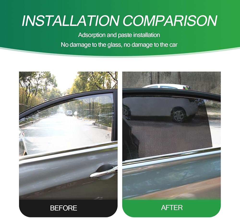 Universal Accessory: This car side window sunshade sticker adheres firmly to the car window and fits curved surfaces perfectly. This car side window sunshade sticker is a universal accessory and suitable for most types of vehicles such as cars, SUVs, trucks, etc.