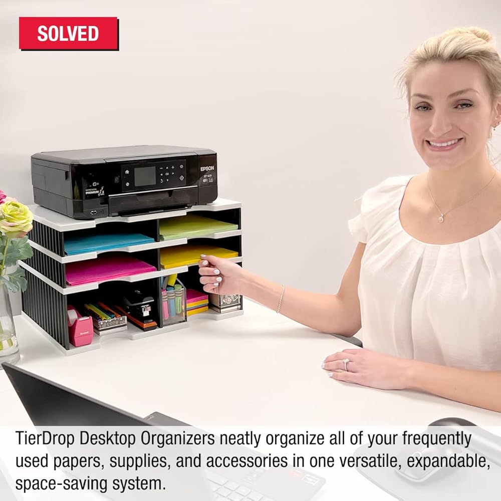 امنح TIERDROP الخاص بك دفعة! - ترفع قاعدة التخزين TierDrop Riser جهاز الفرز الخاص بك بمقدار 5 1/2 بوصة من مكتبك للوصول دون عائق إلى المقصورات السفلية وتخزن بدقة جميع ملحقات مكتبك واللوازم المستخدمة بشكل متكرر. تجميع بدون أدوات - يتميز منظم سطح المكتب بأنه بسيط "بدون أدوات" "التجميع الذي يسير معًا في ثوانٍ.