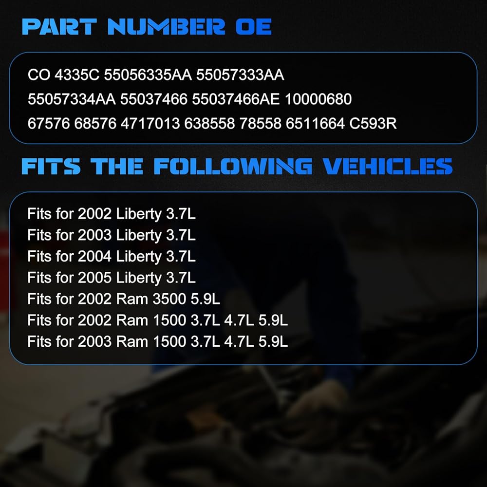 🚘 متوافق مع: مجموعة قابض ضاغط مكيف الهواء CO 4335C تناسب 2002 Ram 2500 5.9L لـ 2002 Ram 3500 5.9L لـ 2002-2005 Liberty 3.7L لـ 2002-2003 Ram 1500 3.7L. لنماذج سنة محددة، يرجى انظر الوصف التفصيلي للنموذج المطبق.