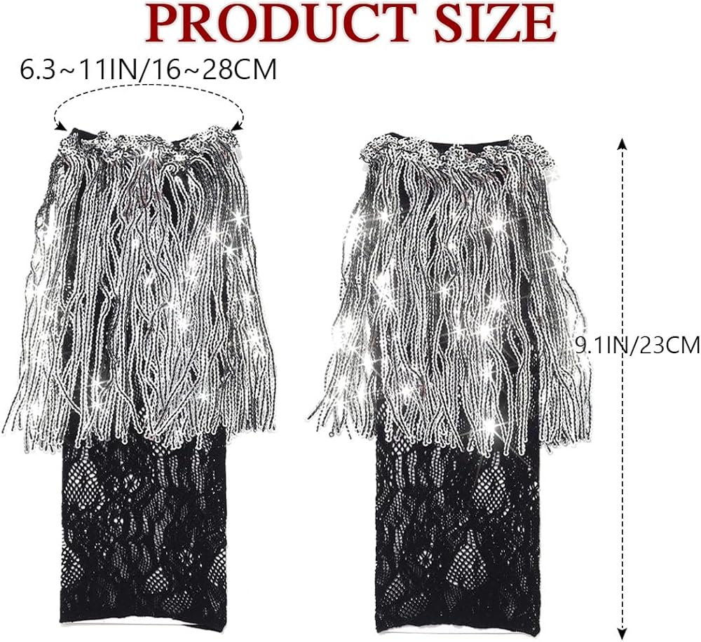 Tassel long gloves feature a unique lace and sparkly sequin, making your attire more charming and fashionable.