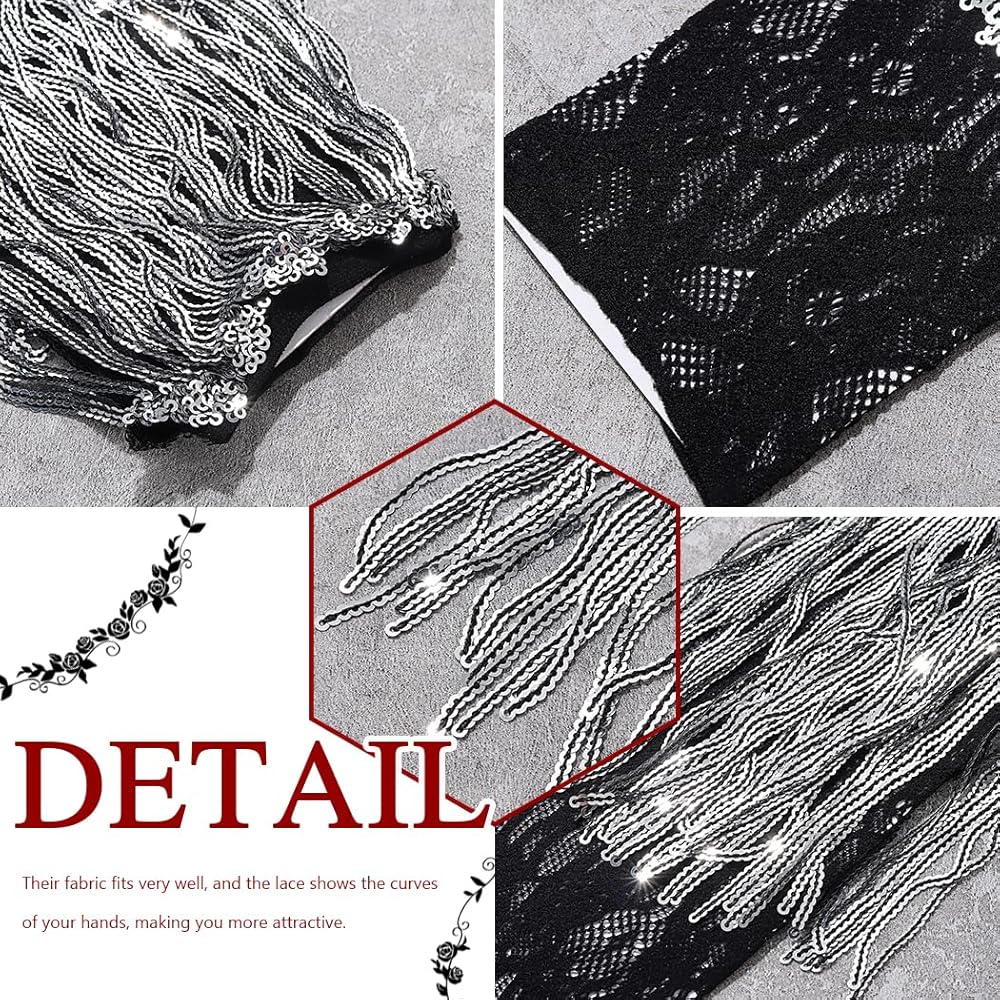 Sparkle fingerless gloves are suitable for most girls and women. Their fabric fits very well, and the lace shows the curves of your hands, making you more attractive.