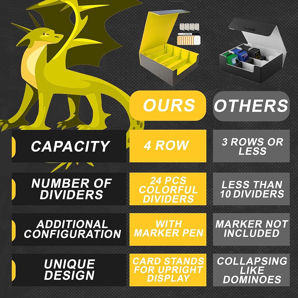 3000+ Trading Card Storage Box, 4 Rows PU Leather Mtg Deck Box With 24 Dividers, 4 Movable Partitions, 1 Marker Pen, Magnetic Closure Card Holder Fits for Magic Game,YuGiOh, MTG,TCG and Sport Cards