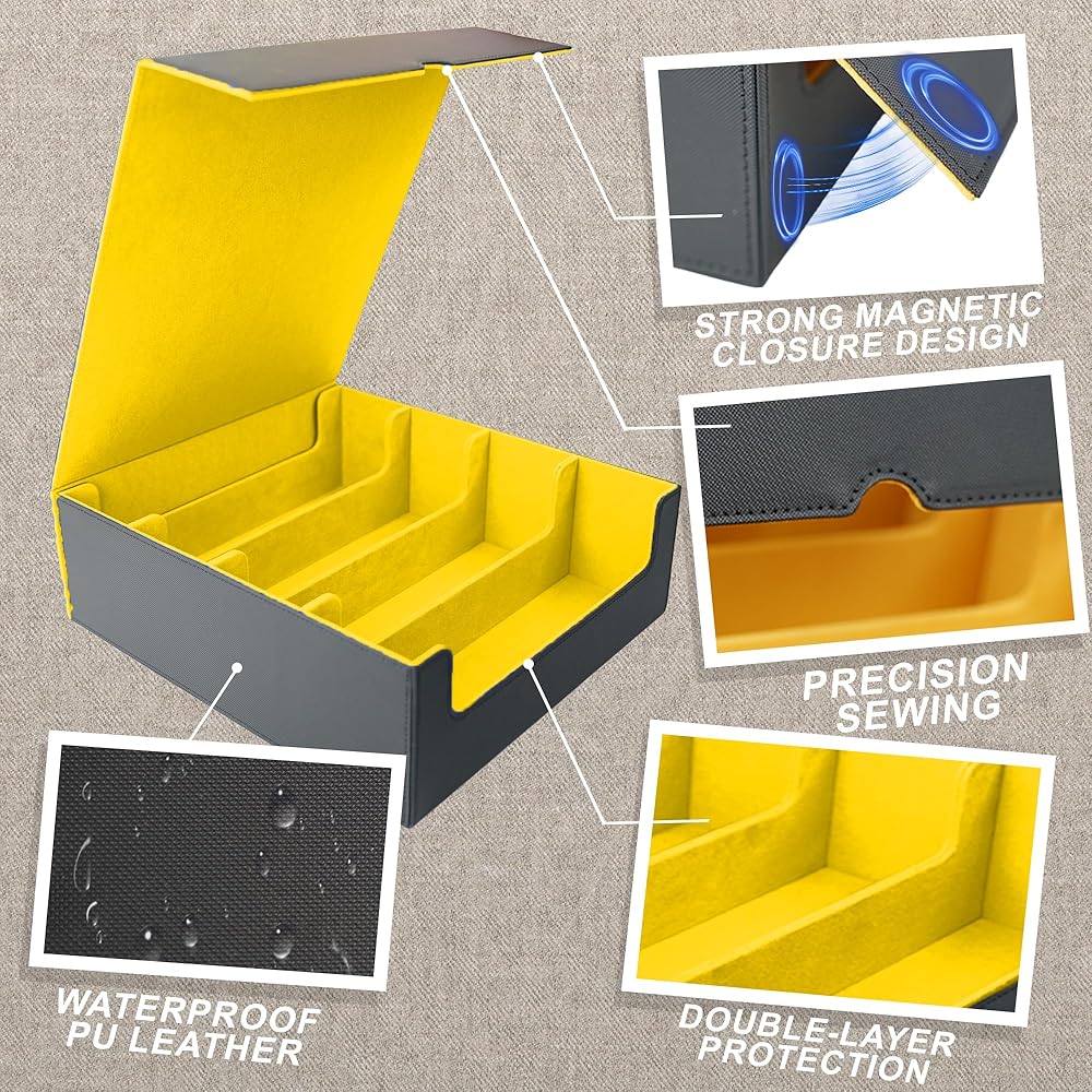High Quality: The card box is made of high-quality PU leather, which is waterproof, non-slip and dirt-resistant. The outer shell is sturdy and durable, and the velvet lining can prevent the cards from being scratched. The wiring is exquisite and has double-layer reinforcement protection. The super strong magnetic closure design prevents the cards from falling out; just to bring you the best user experience!