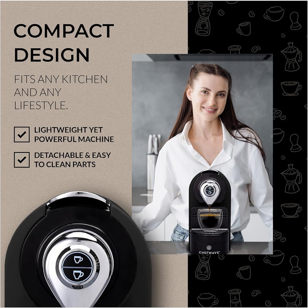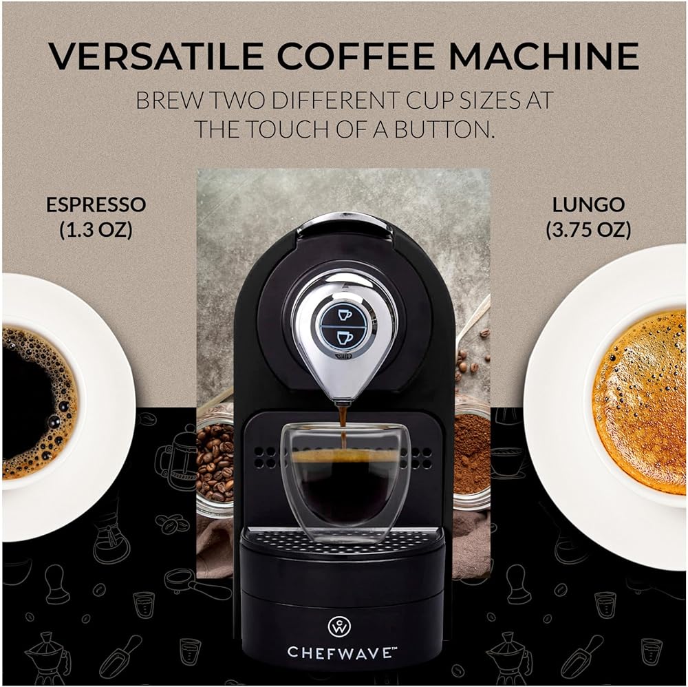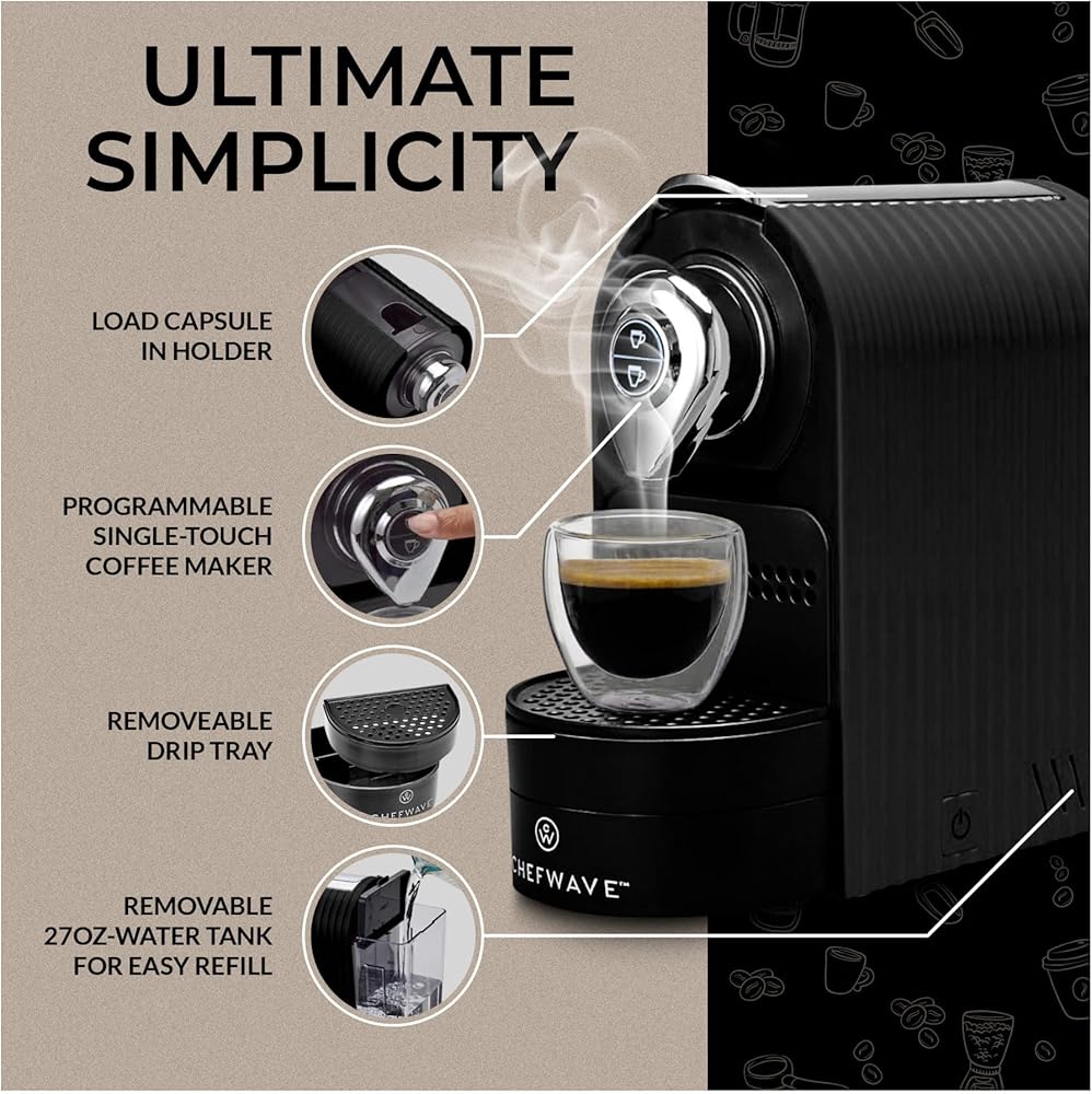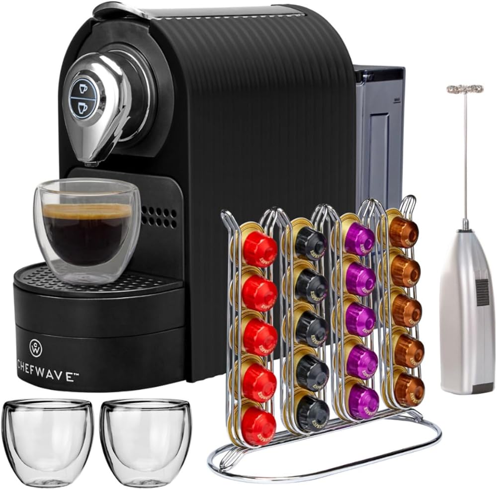 ماكينة إسبرسو صغيرة من شيف ويف كافا لكبسولات نسبرسو المتوافقة مع حامل وأكواب (أسود)