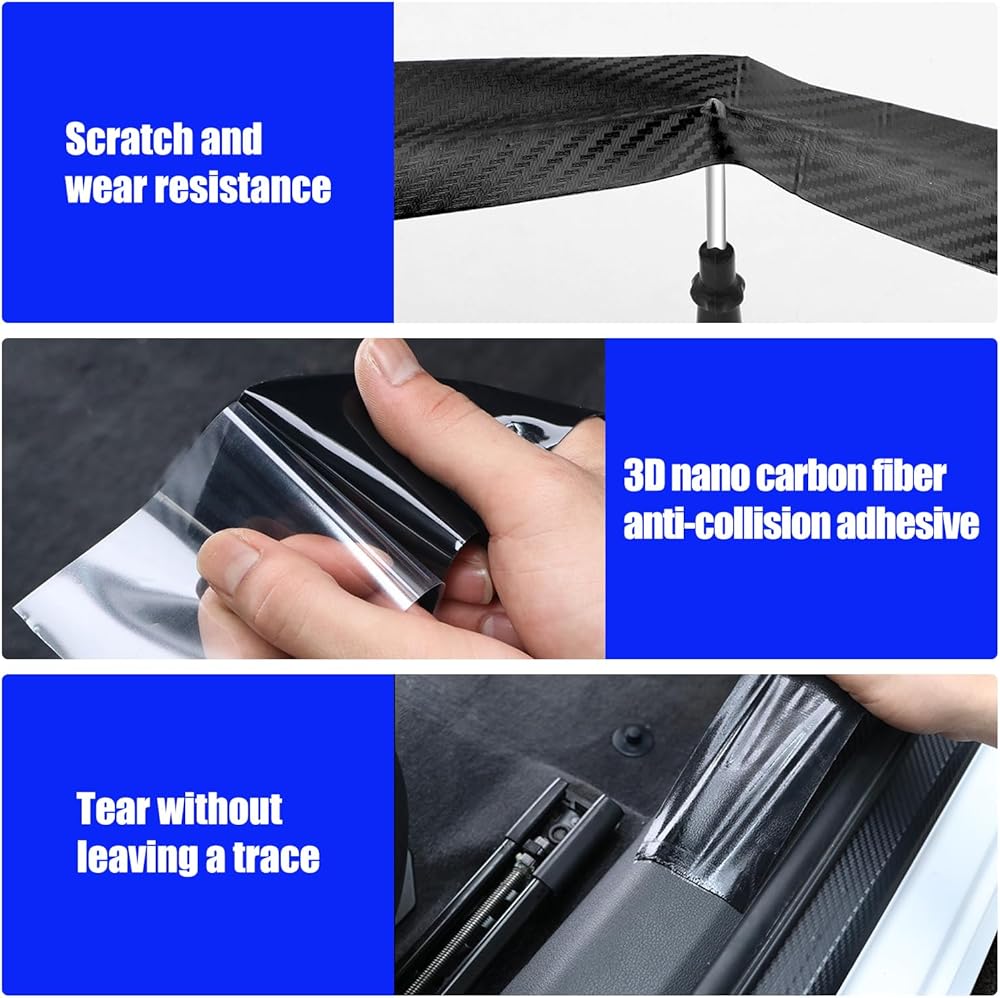 gunhunt Pack-1 Car Door Edge Guards Door Sill Protector, K3D Carbon Fiber Car Anti-Collision Strip, DIY Nanometer Sticker for Car Door Edge/Front and Rear Bumper/Door Sill (Black #32.8Ft x 2.75In)
