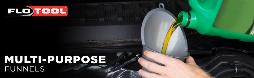FloTool, by Hopkins Manufacturing, offers the most comprehensive and highest quality offering of fluid handling products. Driven by innovative, no-mess product solutions, whether you're changing your oil, topping off the antifreeze or checking all your automotive fluid levels, FloTool has the right application. FloTool's Super Multi-Purpose Funnel is perfect for transmissions, oil, and other engine fluids.