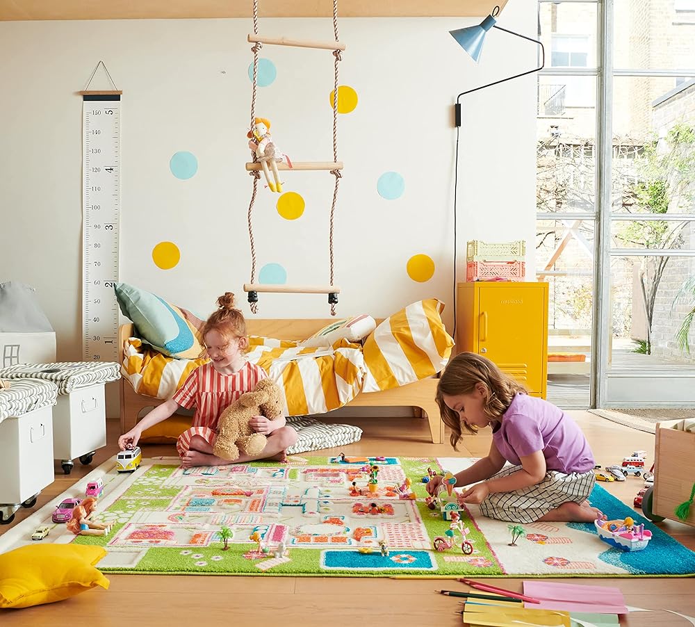 منسوجات ناعمة: سجادة ناعمة ومريحة تتيح لك الجلوس بشكل مريح وتشجع على اللعب على الأرض لفترة أطول