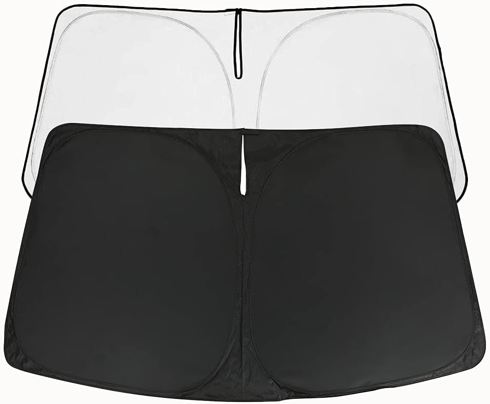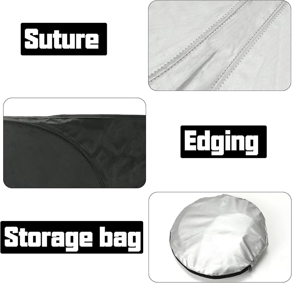 مادة 3 طبقات مطورة: مظلة الشمس ذات 4 طبقات مصنوعة من رقائق ألومنيوم PEVA وقطن الرش ونسيج عاكس 240T (أكثر متانة وسميكة من مادة 210T)، تتكون مظلة الشمس الخاصة بنا من طبقات عاكسة مزدوجة و3 طبقات عازلة للحرارة يمكنها يجعل التظليل والعزل أكثر فعالية، ويحافظ على برودة سيارتك ويحميها من الأضرار الناجمة عن أشعة الشمس الحارة