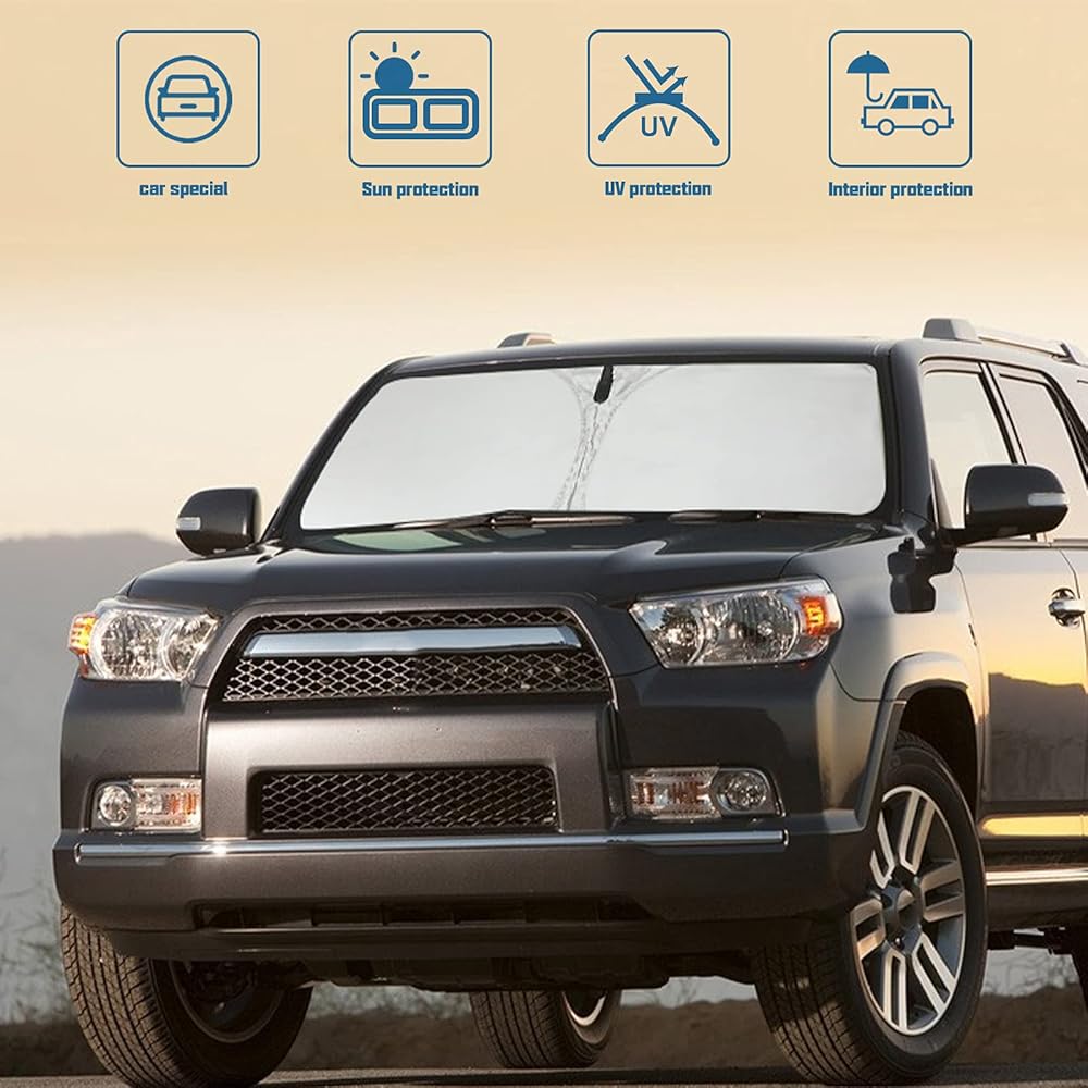 مواصفات السيارة: مظلة شمسية ذات 4 عداء متوافقة مع 2010 2011 2012 2013 2014 2015 2016 2017 2018 2019 2020 2021 2022 2023 2024 2025 Toyota 4Runner (SR5 Trail Limited). يغطي الزجاج الأمامي بالكامل، بدون فجوة، مناسب تمامًا. يتناسب تمامًا مع تصميم الزجاج الأمامي للسيارة - مصمم في الولايات المتحدة الأمريكية. تأكد من موديل وسنة سيارتك قبل الشراء
