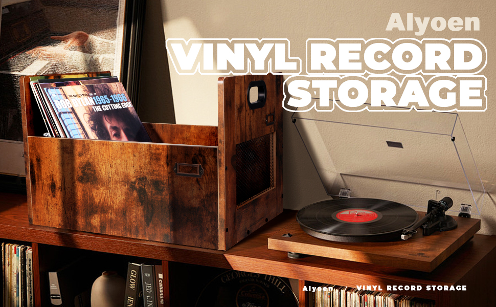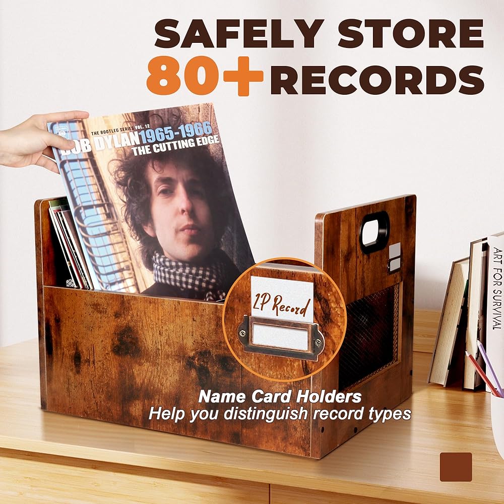 حامل تسجيل فينيل مطور، صندوق تخزين سجل الفينيل، تخزين ألبوم التسجيل لسجلات الفينيل، منظم تخزين سجل الفينيل لأكثر من 80 سجل، صندوق سجل Lp خشبي عتيق مع مقبض للكتاب، ملف