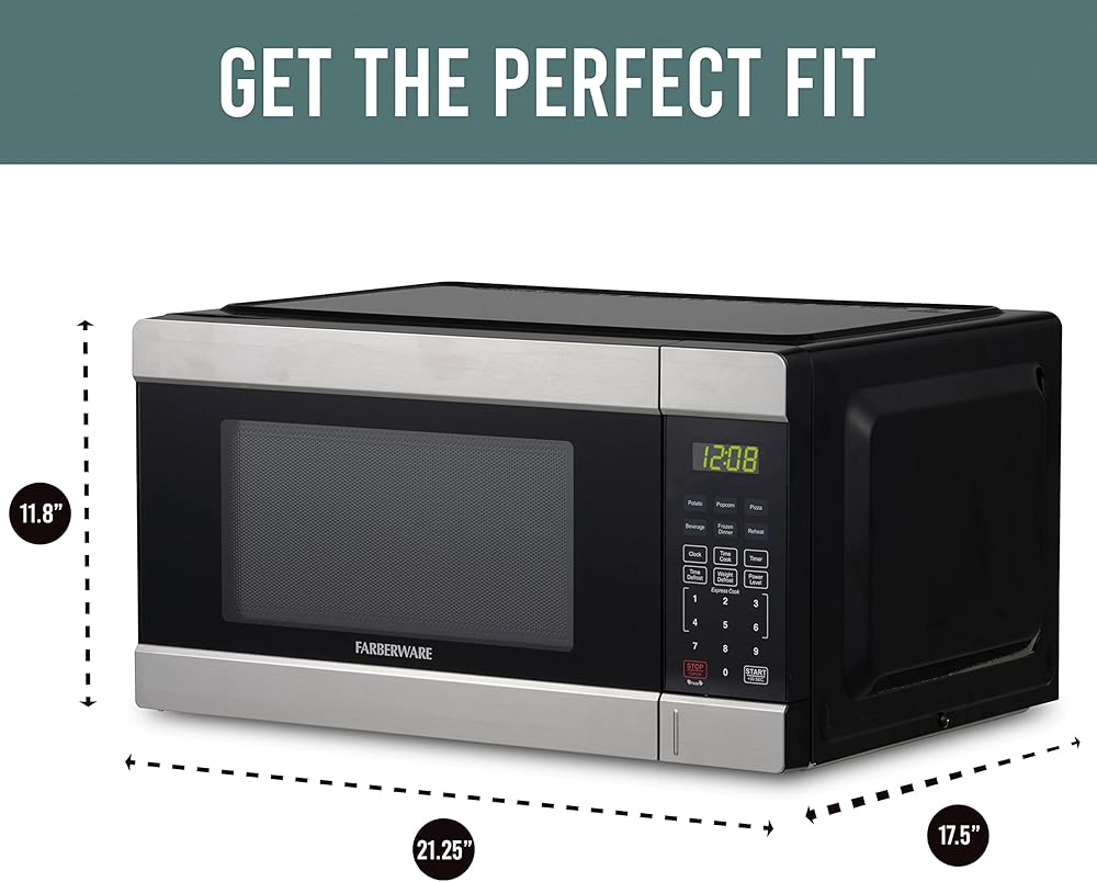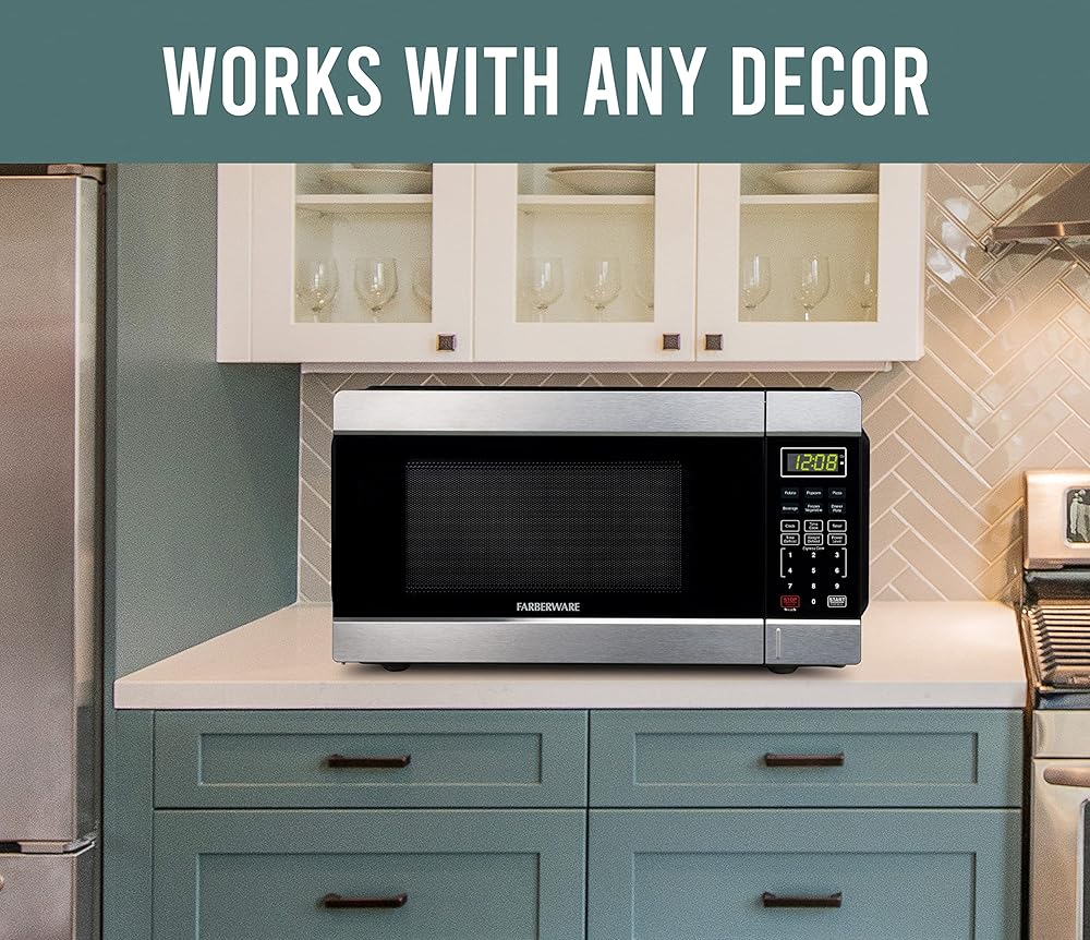 ميكروويف فاربروير كونترتوب 1000 واط، 1.1 قدم مكعب - فرن ميكروويف مع إضاءة LED وقفل للأطفال - مثالي للشقق والمساكن - الفولاذ المقاوم للصدأ سهل التنظيف