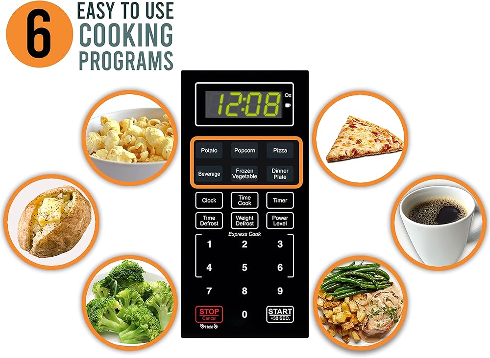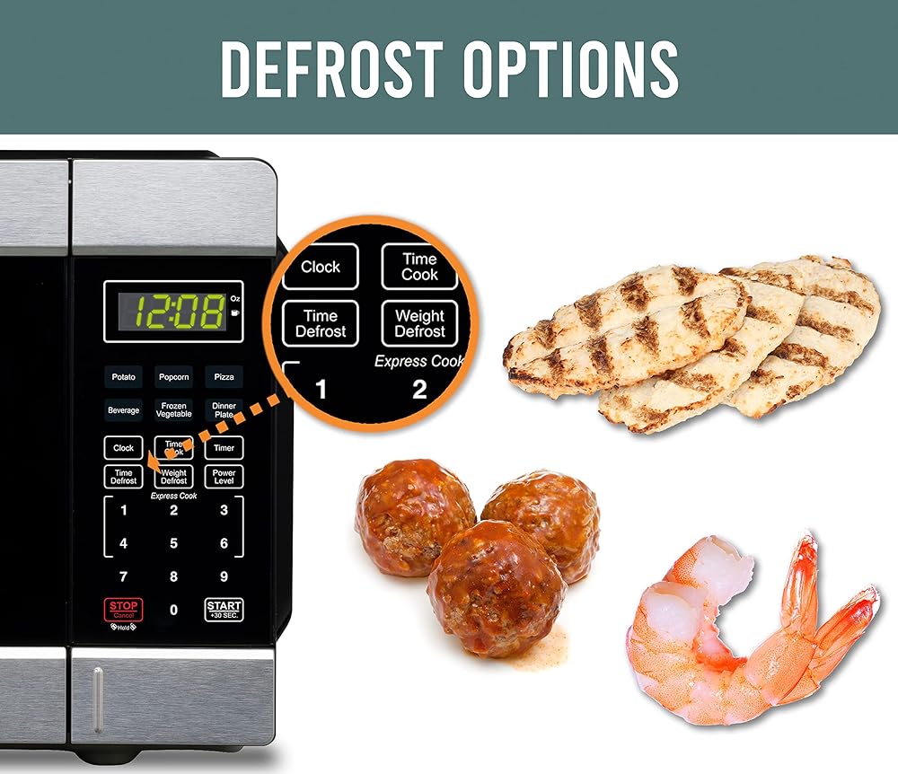• POWERFUL SETTINGS: This microwave has ten power levels with multi-stage cooking. You can fully customize your cooking with six one-touch options, including popcorn, potato, and pizza. Defrost by weight or by time settings to make quick work of any task.
