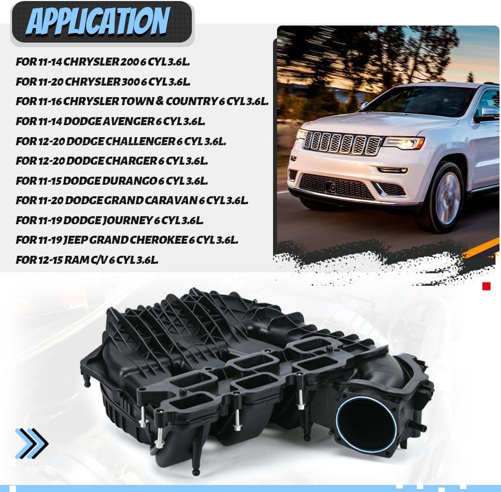 - Application: The intake manifold is compatible with Dodge, Chrysler & Jeep Vehicles With 3.6L Pentastar V6 Engine