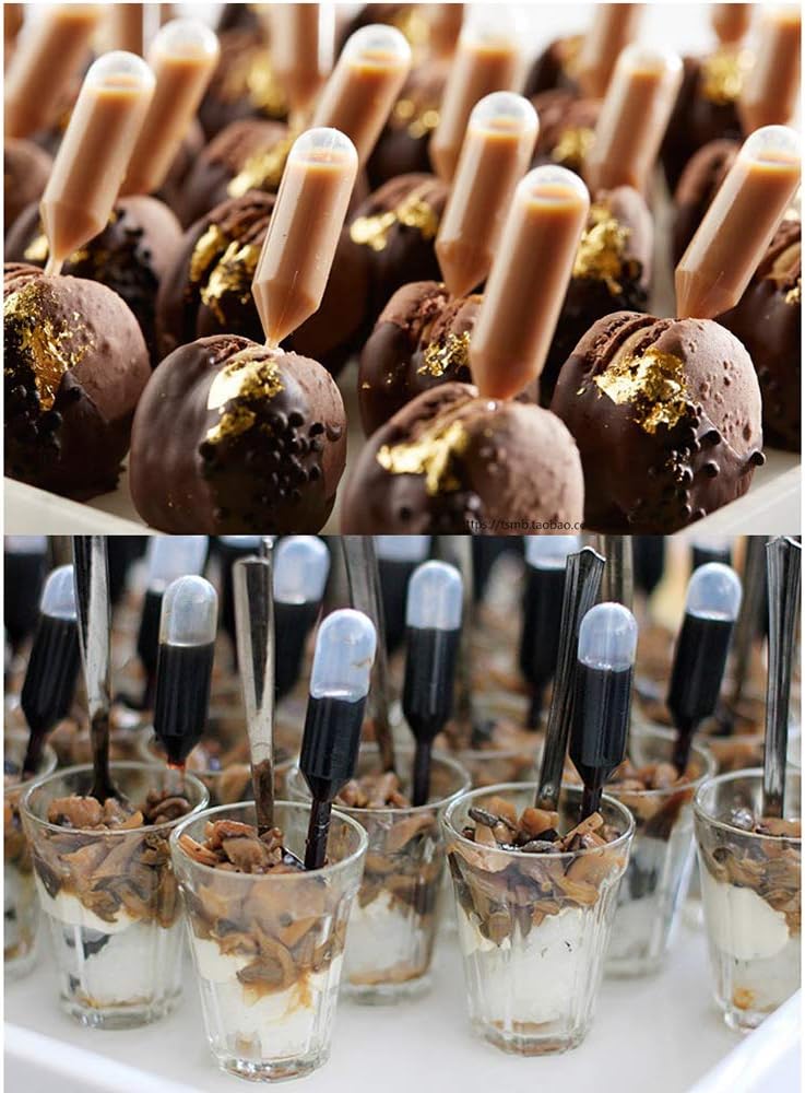• الخامة - مصنوعة من البلاستيك عالي الجودة الآمن غذائياً، شفاف، ناعم، مريح، سهل الاستخدام. إضافة كميات صغيرة من المربى إلى الكب كيك الذي تصنعه بنفسك، تبدو كسحر للحفلات!