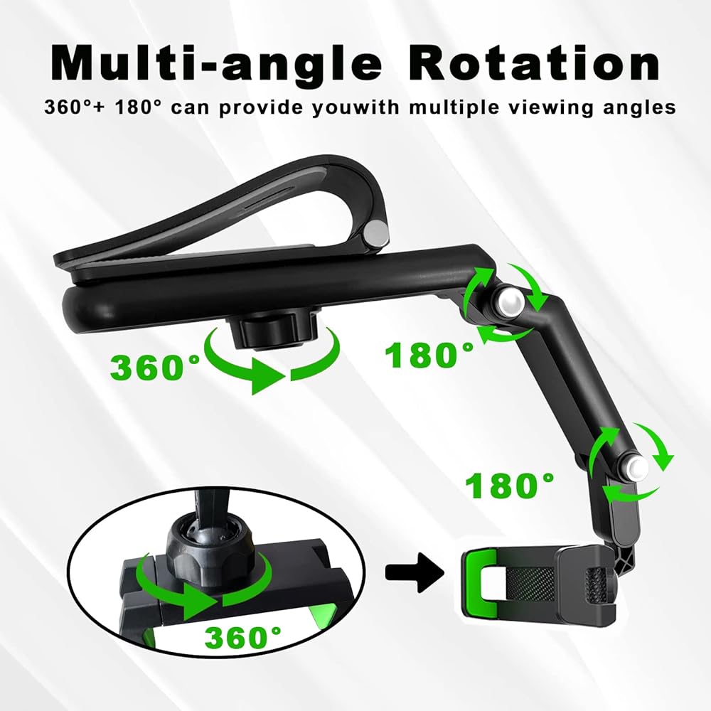 【1800° Degrees Rotation car cell phone holder】Our cell phone holder designed with 360 degrees roatatable ball jiont for optimalxiewing angle and silver button nodes can be folded and rotated 180°, This carcell phone holder canbe adjusted freely according to the front passenger seat, in oder to make sure driving safety, stability and aviod obsttructing the sight.