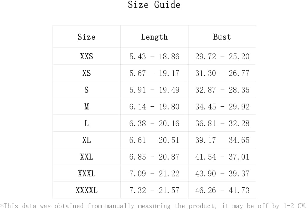 XS:Bust:31.3-26.8IN,Length:5.7/19.2IN