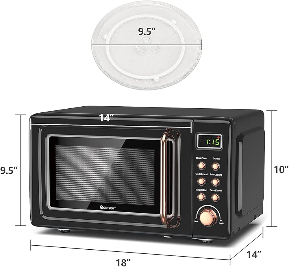 【التفاصيل الفنية】البعد الإجمالي: 18 بوصة × 14 بوصة × 10 بوصة (طول × عرض × ارتفاع)، البعد الداخلي: 13 بوصة × 10 بوصة × 7 بوصة (طول × عرض × ارتفاع)، قطر لوحة الدوران: 9.5 بوصة، السعة : 0.7 قدم مكعب، طاقة الخرج: 700 وات، سلك طاقة معتمد من UL.