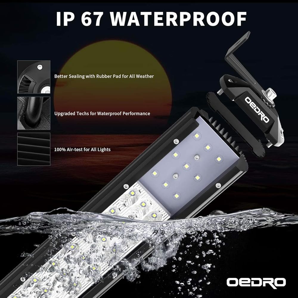 ✅ شعاع كومبو أوسع، سطوع ثلاثي الصف - يتميز شريط الإضاءة OEDRO مقاس 52 بوصة برقائق LED ثلاثية الصف، مما يعطي شعاع كومبو الضوء الأبيض 6,000 كلفن لإضاءة الطريق للأمام للحصول على تأثير إضاءة أفضل ويوفر التوازن المثالي بين مسافة الشعاع ومنطقة التغطية. مما يجعلها أكثر سطوعًا بمقدار 1.3 مرة من مصابيح العمل التقليدية ذات الصف المزدوج.