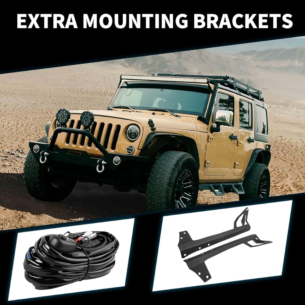 Oedro LED Light Bar Tri-Row 52 Inch 758W Combo Off Road Lights Driving Fog Light Work Lamp + أعلى سقف من الزجاج الأمامي المتوافق مع 2007-2018 JEEP JK WRANGLER + WIRINCES