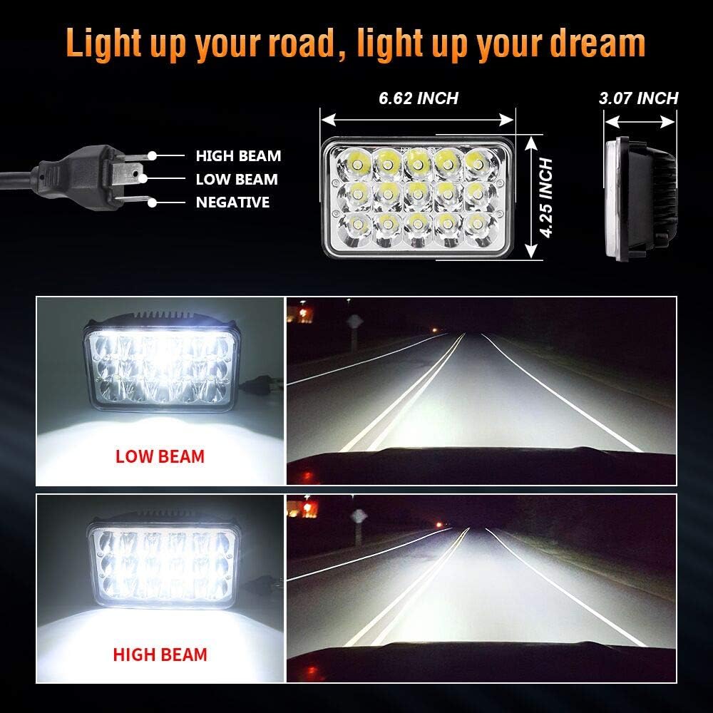 رقائق LED فائقة السطوع 15pcsx 3W، 4200Lm/pcs للشعاع العالي، 2500Lm/pcs للشعاع المنخفض، نحن نستخدم رقائق LED الأصلية عالية الأداء في الولايات المتحدة، أكثر سطوعًا بكثير من المصابيح الأمامية الأخرى المشابهة 4x6.