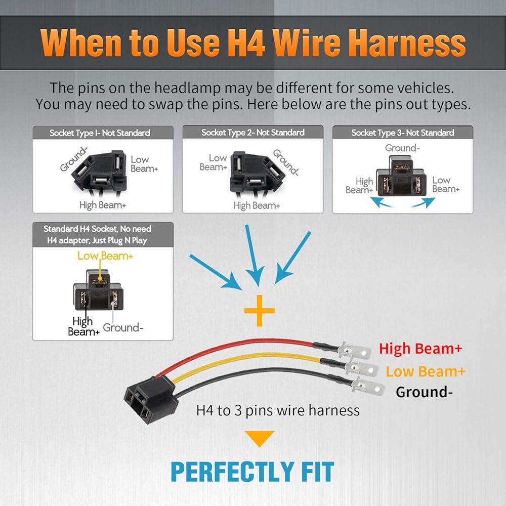 متوافق مع المصابيح الأمامية: H4656 / H4651 / 4651 / 4652 / H4652 /H4666 / H6545. يأتي في التطبيقات التي تناسب ما يصل إلى 99% من المركبات، بما في ذلك سيارات السيدان وسيارات الدفع الرباعي الخفيفة والشاحنات والدراجات النارية ومركبات الطرق الوعرة، وعادة ما يتم استخدامها في المركبات ذات 4 مصابيح أمامية.