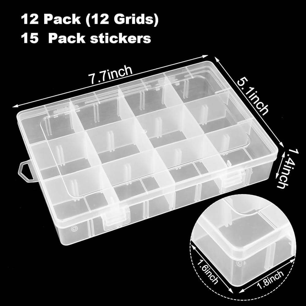 صندوق منظم بلاستيكي ذو 12 شبكة - صندوق منظم الأجزاء الصغيرة قابل للإزالة والتجميع حسب الرغبة، لذلك يمكنك تغيير حجم الحجرة حسب ما تحتاج إلى تخزينه. مزلاجان متينان يجعلان من السهل الفتح والإغلاق، ويظلان آمنين عند إغلاق الكباس.