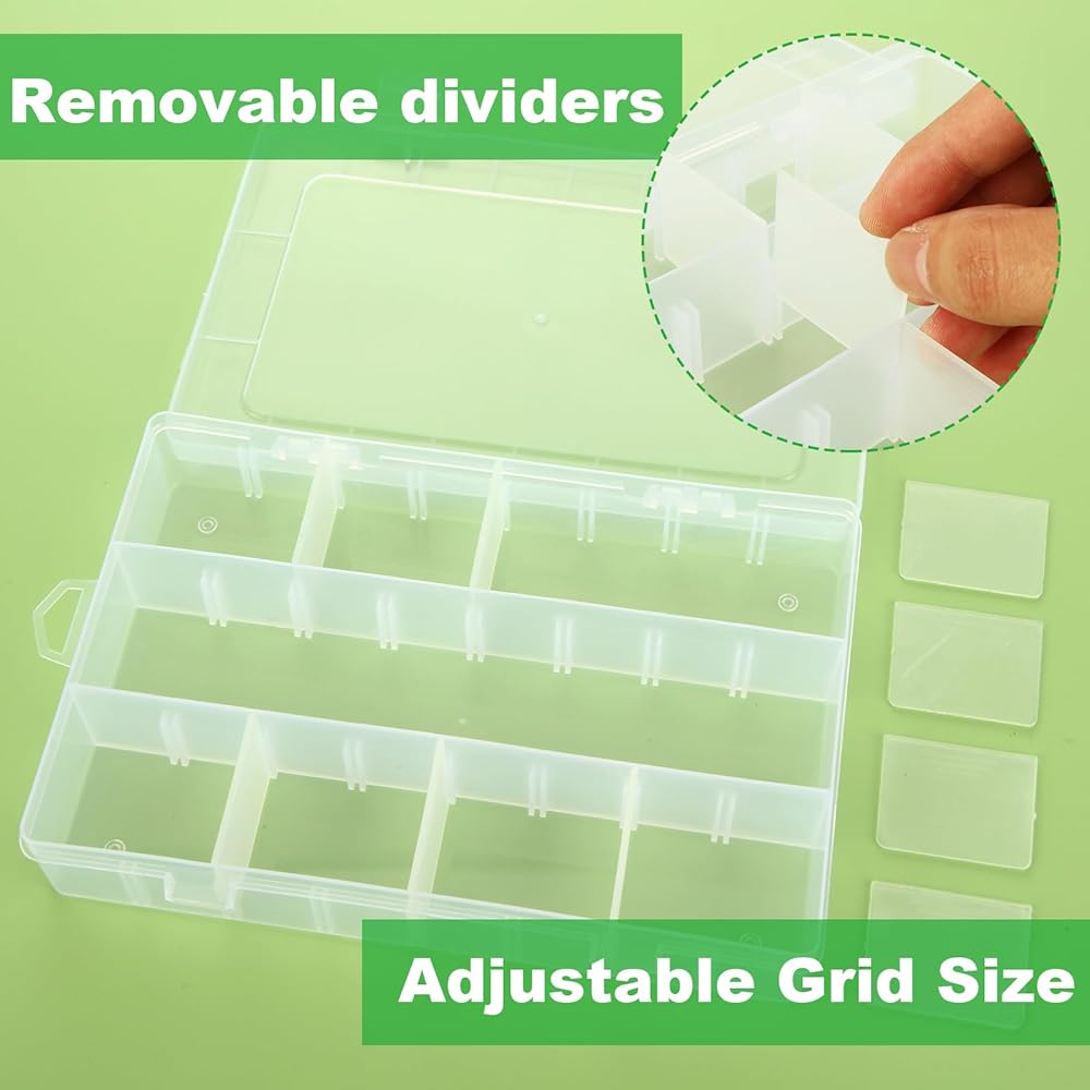 المواصفات - سوف تحصل على منظم صندوق معالجة شبكي 12 × 12 و15 ملصقًا (480 ملصقًا). يبلغ مقاس كل منظم خرز بلاستيكي 7.7 × 5.1 × 1.1 بوصة (طول × عرض × ارتفاع) من الخارج، حجم كل شبكة صغيرة هو 1.85 × 1.6 × 1.3 بوصة (قابل للتعديل - أكبر أو أصغر)، ويمكن تعديل حجم الشبكة.