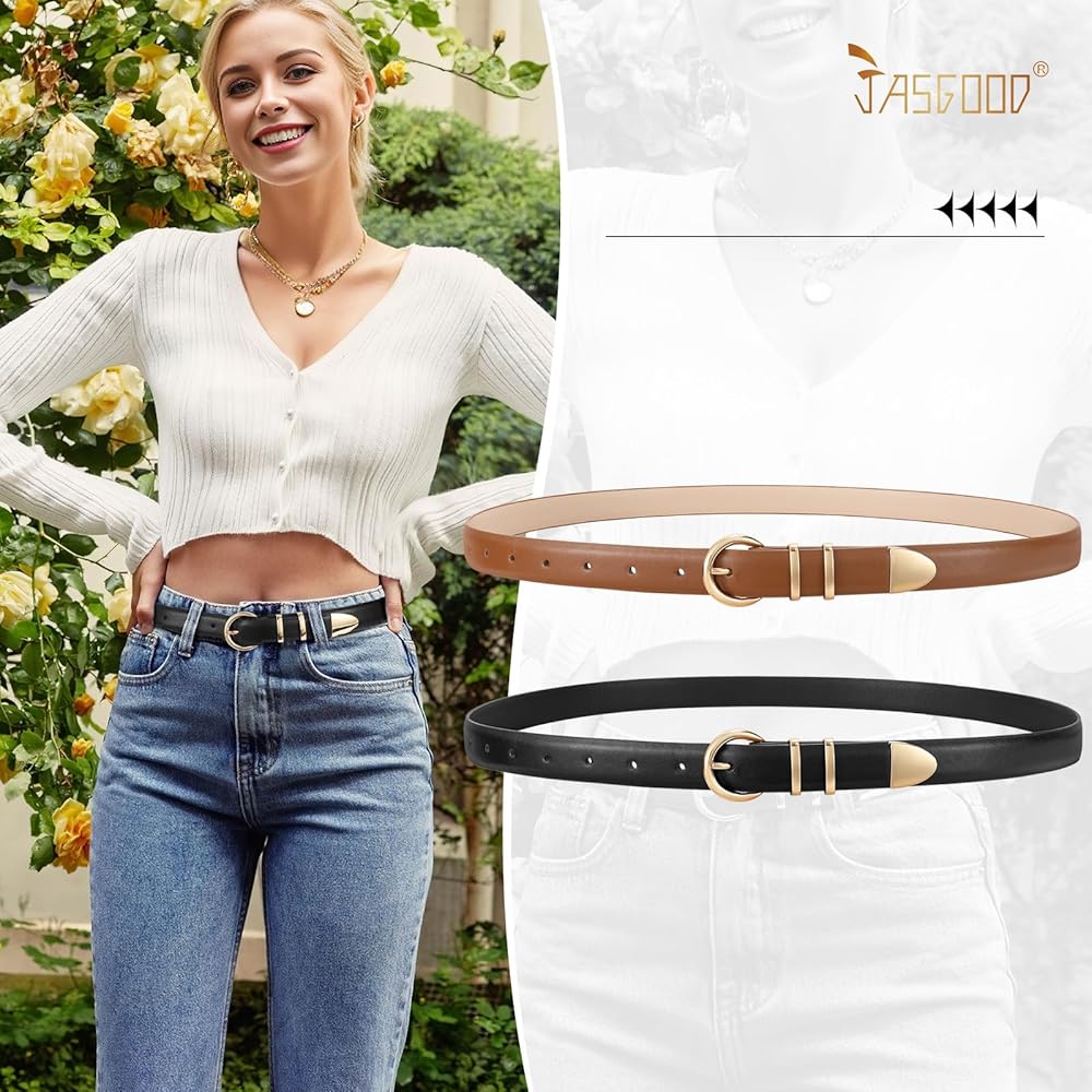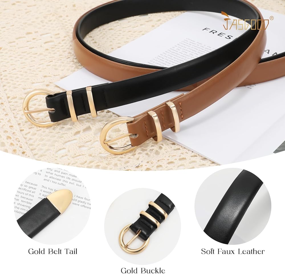 حزام نسائي باللون الأسود والبني: حزام أسود للسيدات من JASGOOD مصنوع من الجلد الصناعي الفاخر. تتميز الأحزمة الجلدية النسائية بلون الجينز بمهارة حرفية حديثة، ويظل اللون كما هو بغض النظر عن مدة استخدامه. سواء كنت يمكن ارتداؤه للخروج أو إبقائه كاجوال، مما يضيف الأناقة إلى أي ملابس.