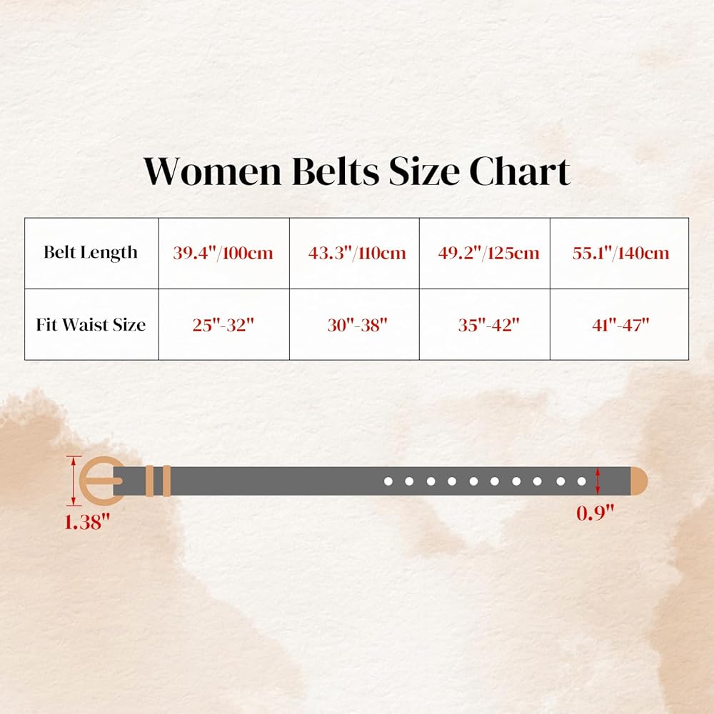 خيارات مقاسات متعددة: لدينا 4 مقاسات لتناسب مقاس الخصر 25 بوصة - 47 بوصة من المقاس الصغير إلى المقاس الكبير لهذا الحزام النسائي النحيف، عرض الحزام: 0.9 بوصة. تم تصميم هذا الحزام ليناسب كل محيط الخصر تقريبًا، مما يضمن الراحة والأناقة أي جماعة.