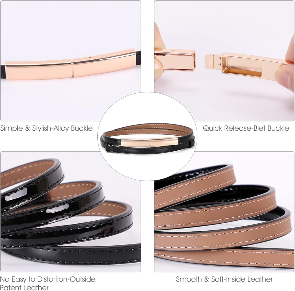 • حزام جلدي نحيف لطيف وعصري يمنح ملابسك من أي لون أو ملمس (الفساتين، التنانير، البلوزات، البدلات) اللمسة المثالية كهدية مثالية في الهالوين، وعيد الأم، وعيد الشكر، وعيد الميلاد، ورأس السنة الجديدة.